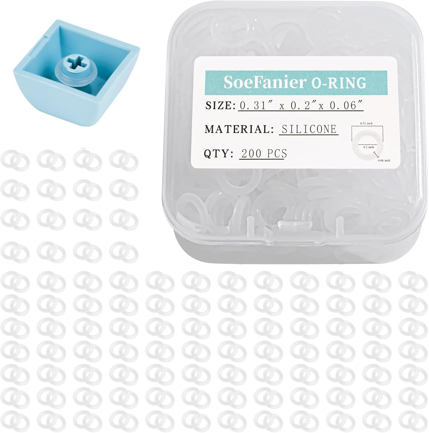 200Pcs Clear O-Ring Switch Dampeners Keycap for Mechanical Keyboard Cherry Mx, White…