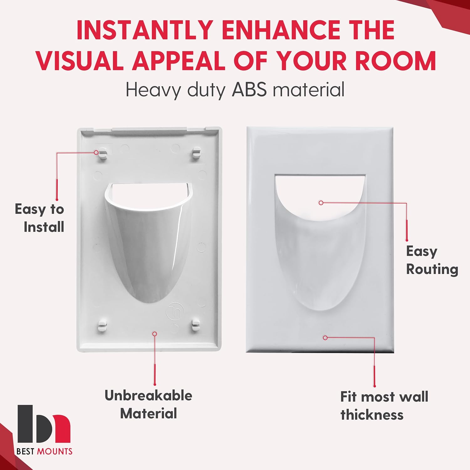 BestMounts - 1 Pack In Wall Cable Management 1-Gang Recessed Snap-ON Low Voltage Cable Plate with Mounting Bracket ETL Listed (White, Inner nose)