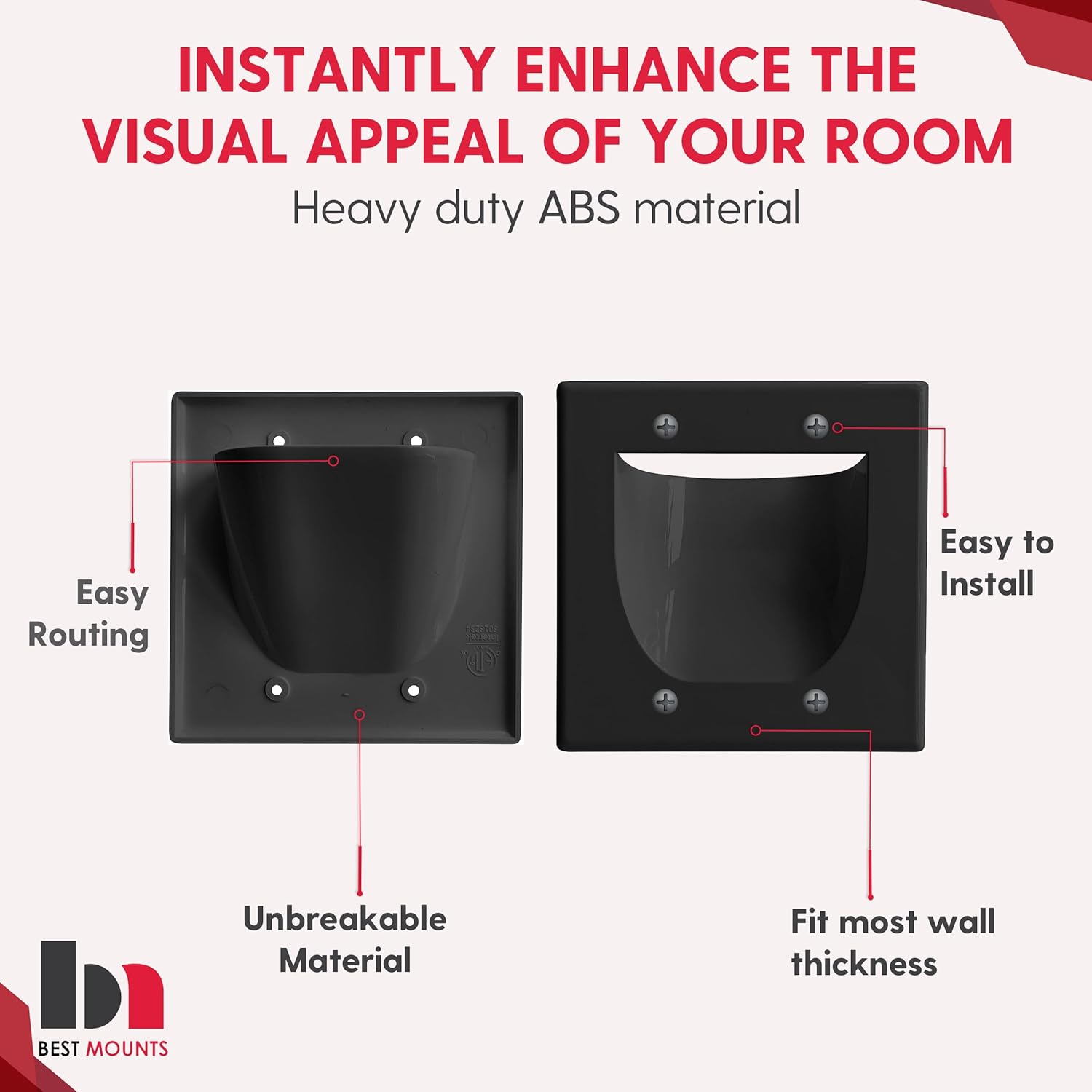 BestMounts - 2 Pack In Wall Cable Management Kit - Recessed Wall Plate Cable Black Pass Through Pair with Dual Gang Low Voltage Mounting Bracket - TV Cord Hider for Wall Mounted TV ETL Listed
