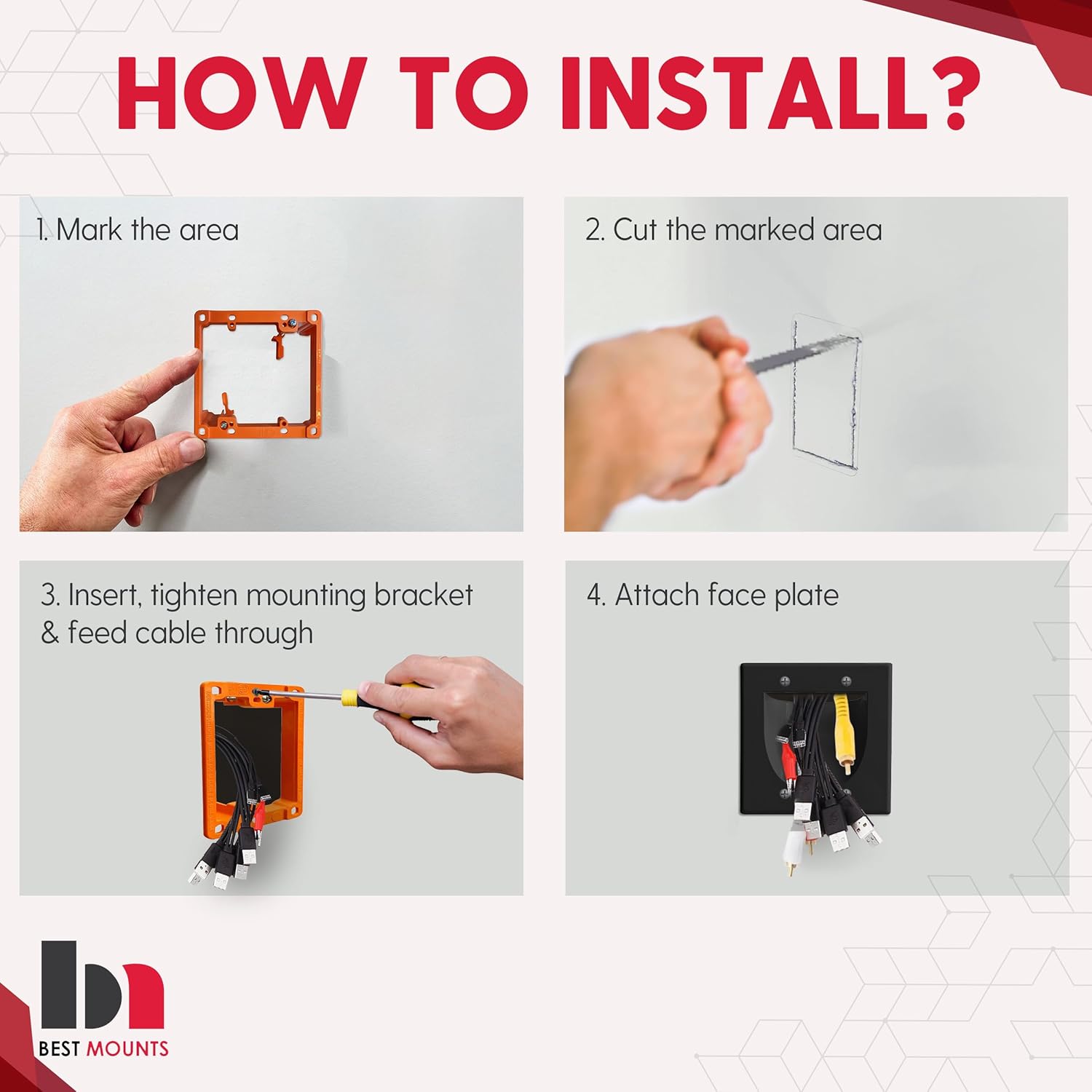- ORGANIZE CABLES - Bestmounts Dual gang cable wall plate is the perfect solution to conceal cords on wall concealing up to 8-10 low voltage audio/video cables behind your wall-mounted flat panel TV (may hold more than 8-10 cables depending on type)