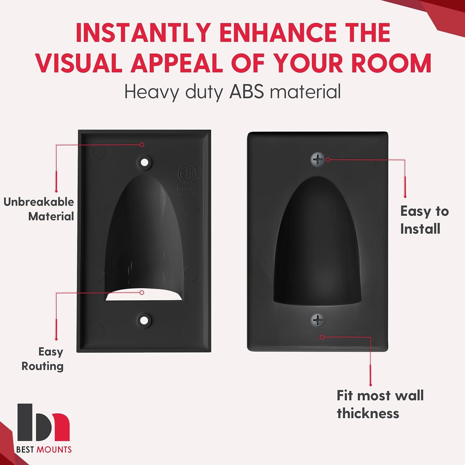 - ORGANIZE CABLES β Bestmounts Single gang cable wall plate is the perfect solution to conceal cords on wall up to 4 low voltage audio/video cables behind your wall-mounted flat panel TV (may hold more than 4 cables depending on type)