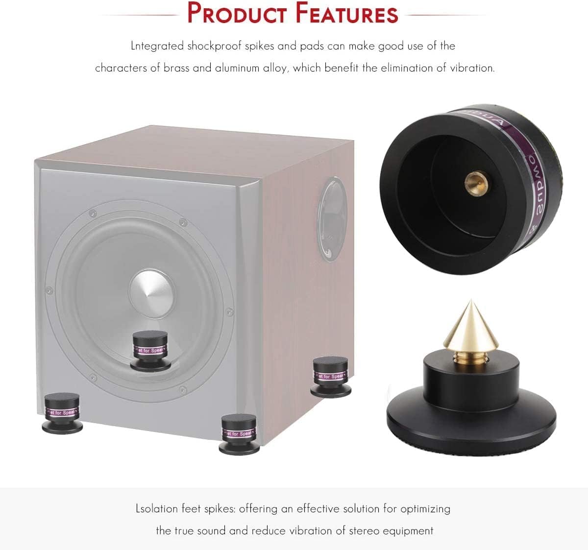 Tertullus 4 Pcs Aluminum Speaker Spike+Isolation Feet for Turntable Amplifier Subwoofer Black