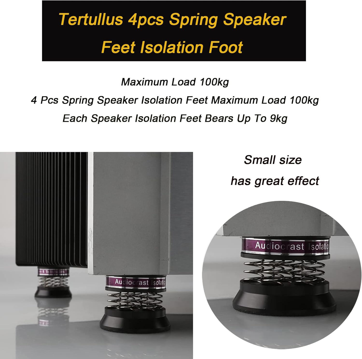 Tertullus 4pcs Spring Speaker Feet Isolation Foot 43mm×38.5mm Stand HiFi Aluminum Shock Absorber Isolation Pads Turntable Dac Feet Pad(Black)