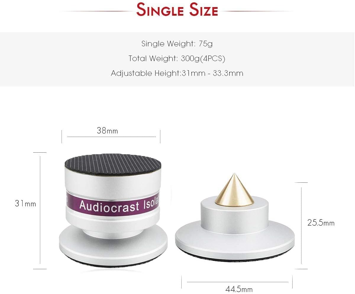 - ②High Fidelity HiFi Sound Quality: Effectively reducing resonance, suitable for foot nails on speaker equipment or racks to effectively reduce contact between the box and the ground, providing more precise shock absorption, reducing resonance generation, and more mellow expression of the texture of the music itself, thus achieving high-quality sound effects that balance HIFI music, as if injecting vitality into the music and immediately reviving it.