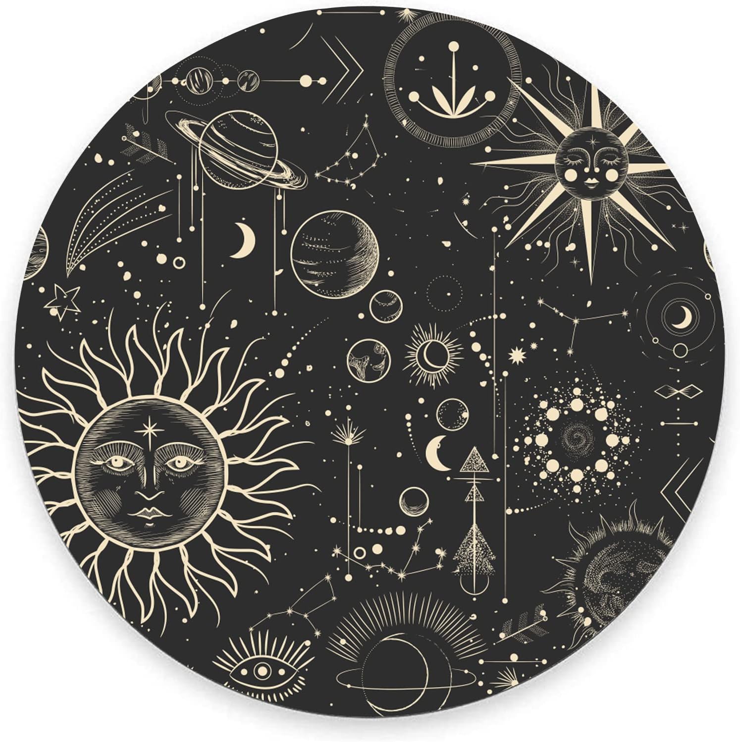 Round Mouse Pad, Celestial Pattern Sun and Moon Mouse Pad, Washable Gaming Mousepads with Lycra Cloth, Non-Slip Rubber Base Computer Small Mouse Pads for Wireless Mouse