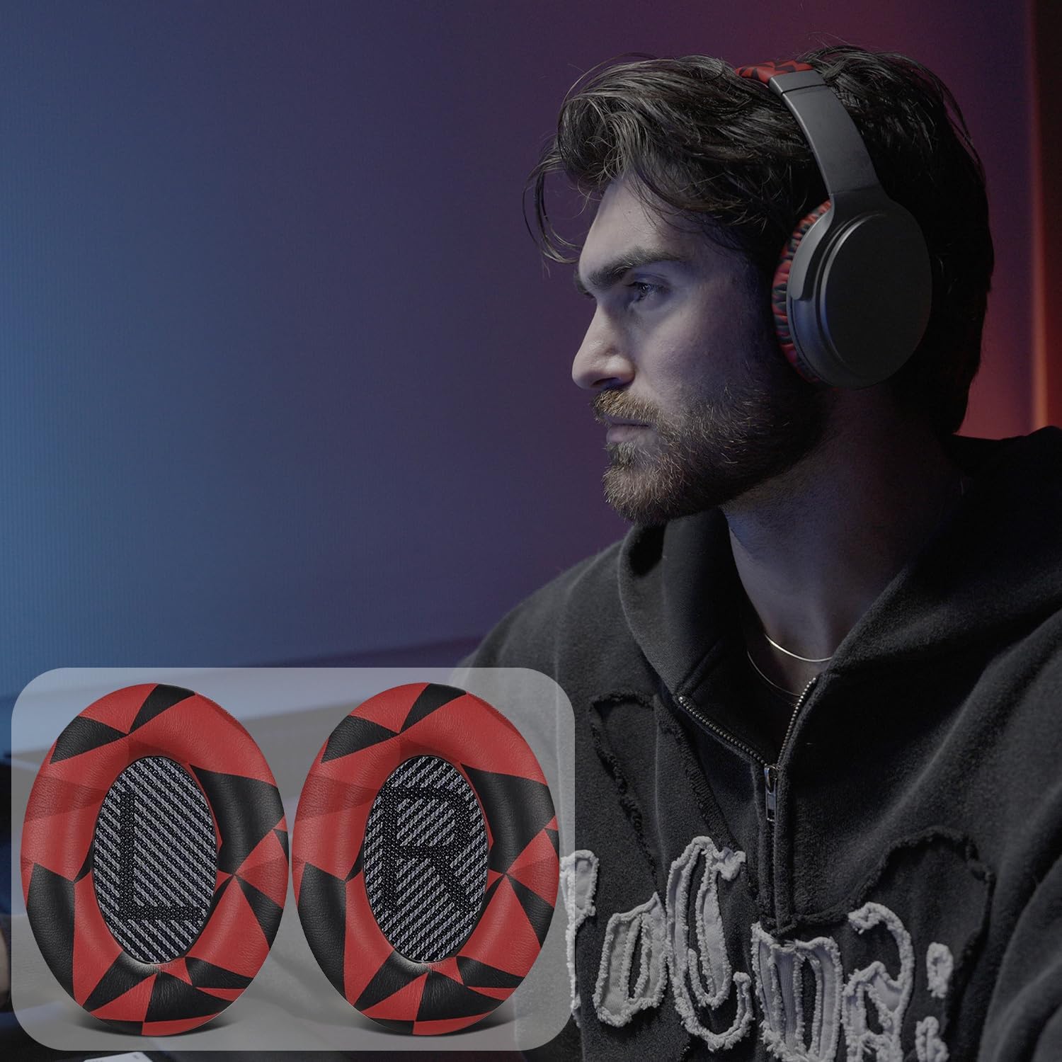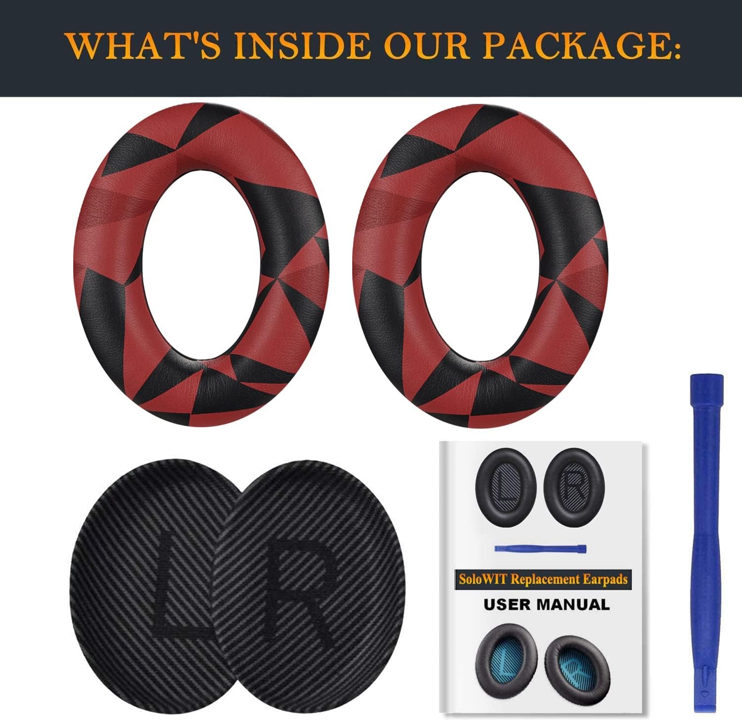 SoloWIT Replacement Earpads Cushions for Bose QuietComfort 35 (QC35) & Quiet Comfort 35 II (QC35 ii) Headphones, Ear Pads with Softer Leather, Noise Isolation Foam, Added Thickness (Red Storm)