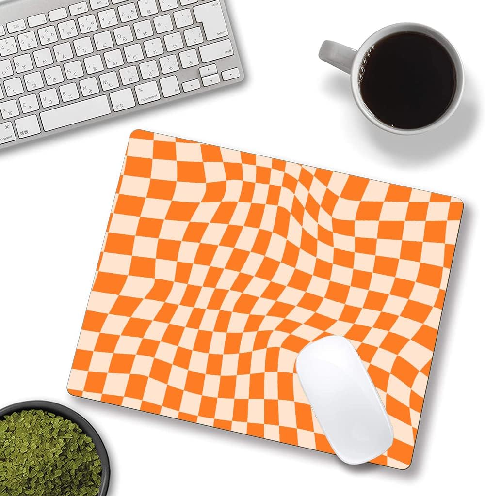 Mouse Pad, Orange Checkered Design Mouse Pad, Washable Square Cloth Mousepad for Office Laptop, Non-Slip Rubber Computer Mouse Pads for Wireless Mouse, Cute Mouse Pads for Desk