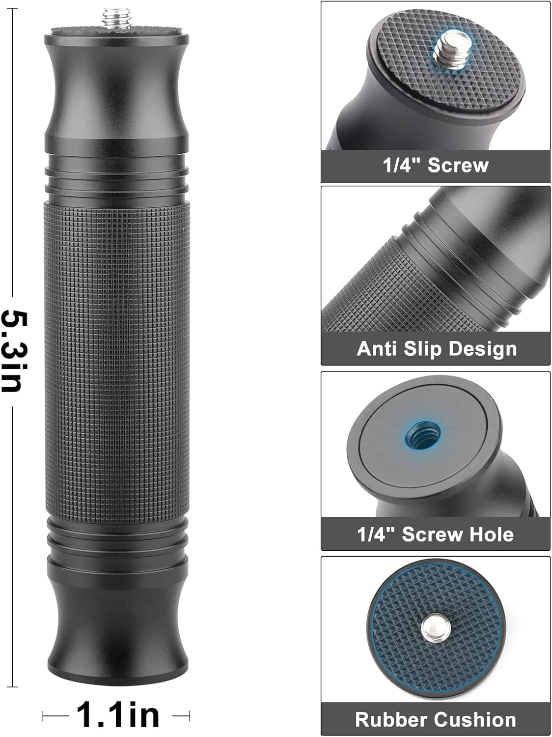 - Great Camera Handheld Stabilizer Grip - Compatible with all DSLR mirrorless camera, camcorder, LED video light, long focus lens, and any other equipment with 1/4" screw /thread hole.