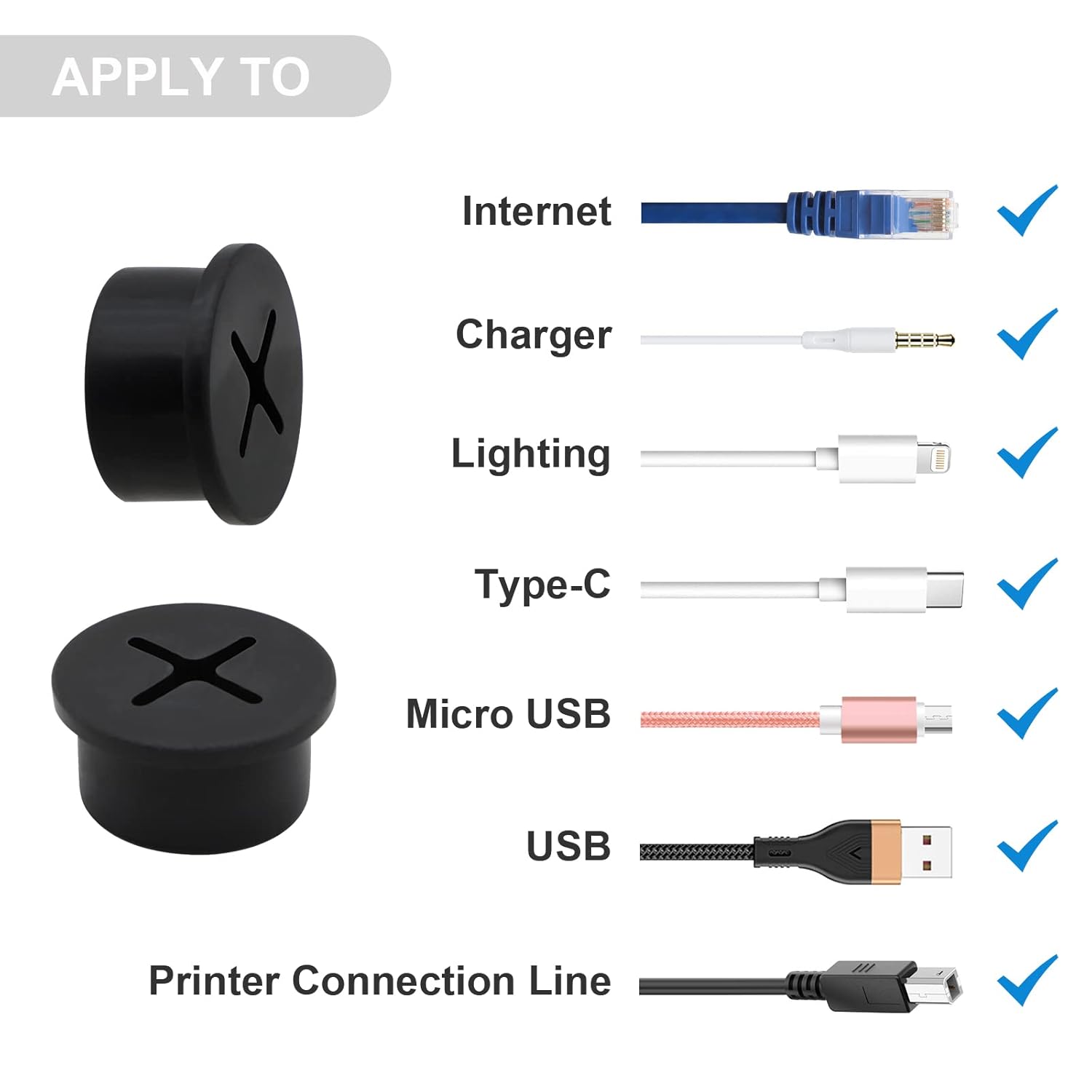 - 【Flexible Design】Flexible cord grommets design can accept many wires from any direction. Flexible top can hold wires and cables up to 3/4inch (20mm) in diameter.