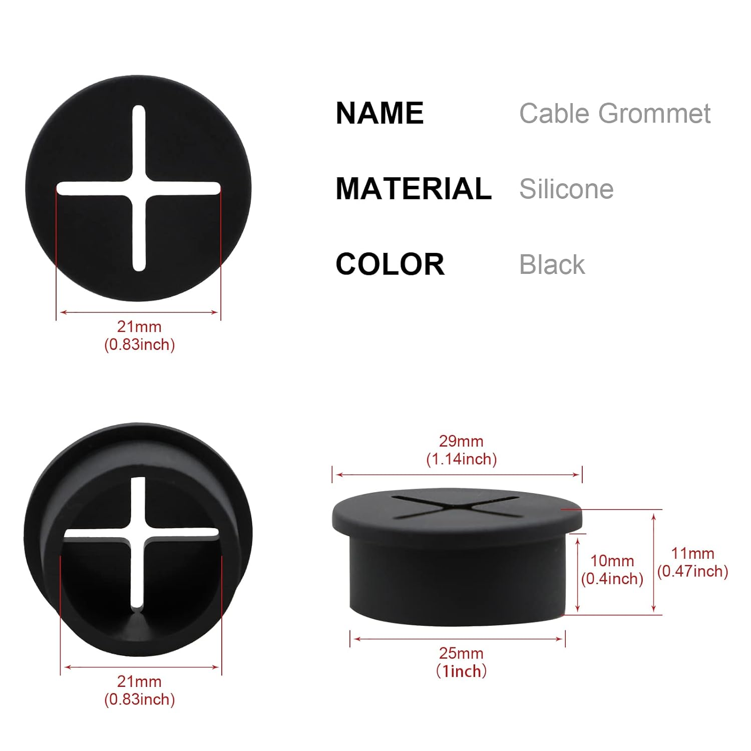 - 【Package Content】You will receive 12pcs black desk grommets in the package,The grommets are made of sturdy silicone Rubber,and suitable for 1inch (25mm) holes.Durable and Corrosion Resistance.