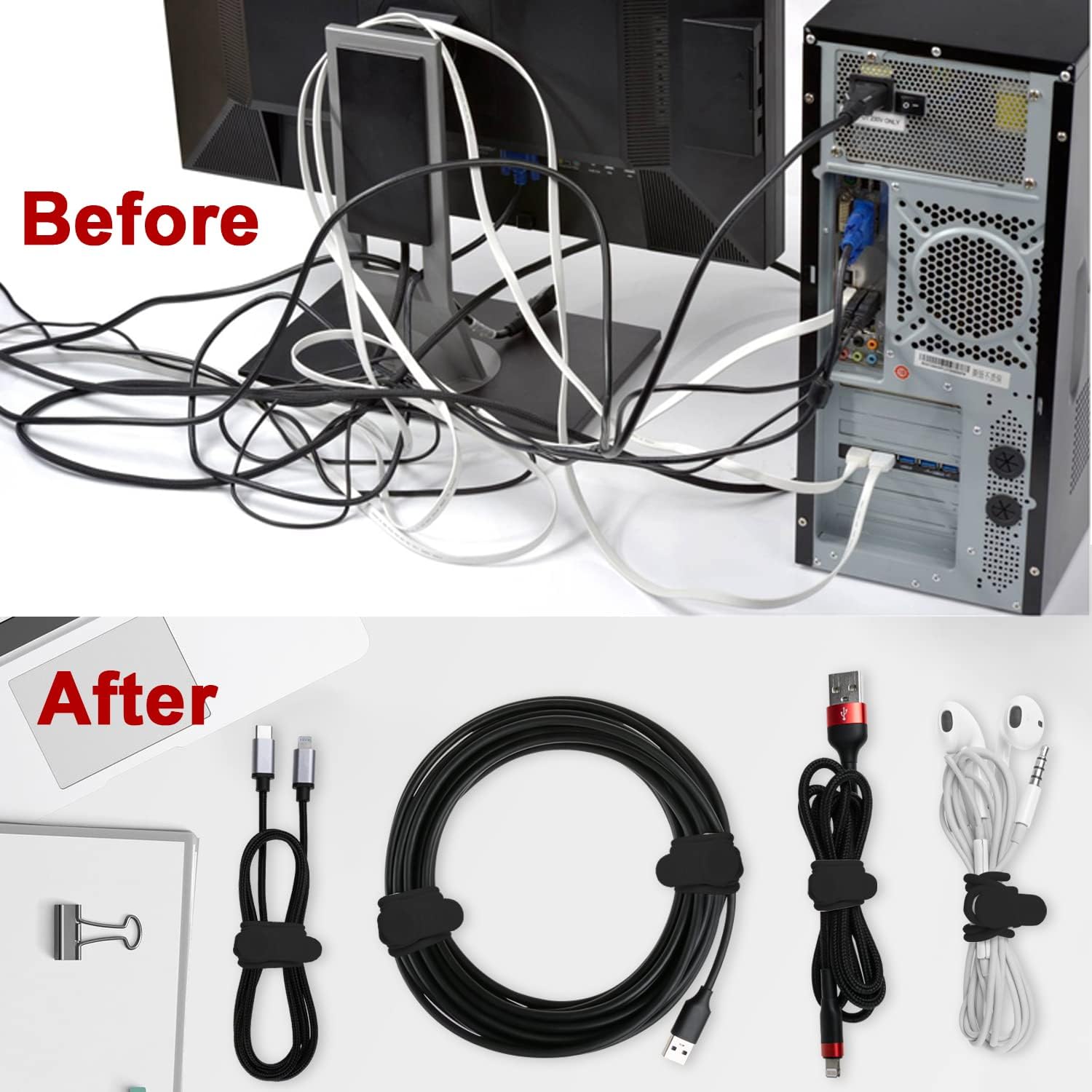 Nearockle 16Pcs Silicone Cable Straps Wire Organizer for Bundling Earphone, Phone Charger, Computer Cords, Reusable Cable Ties Cord Organizer in Home,Office,Kitchen,School(Black)