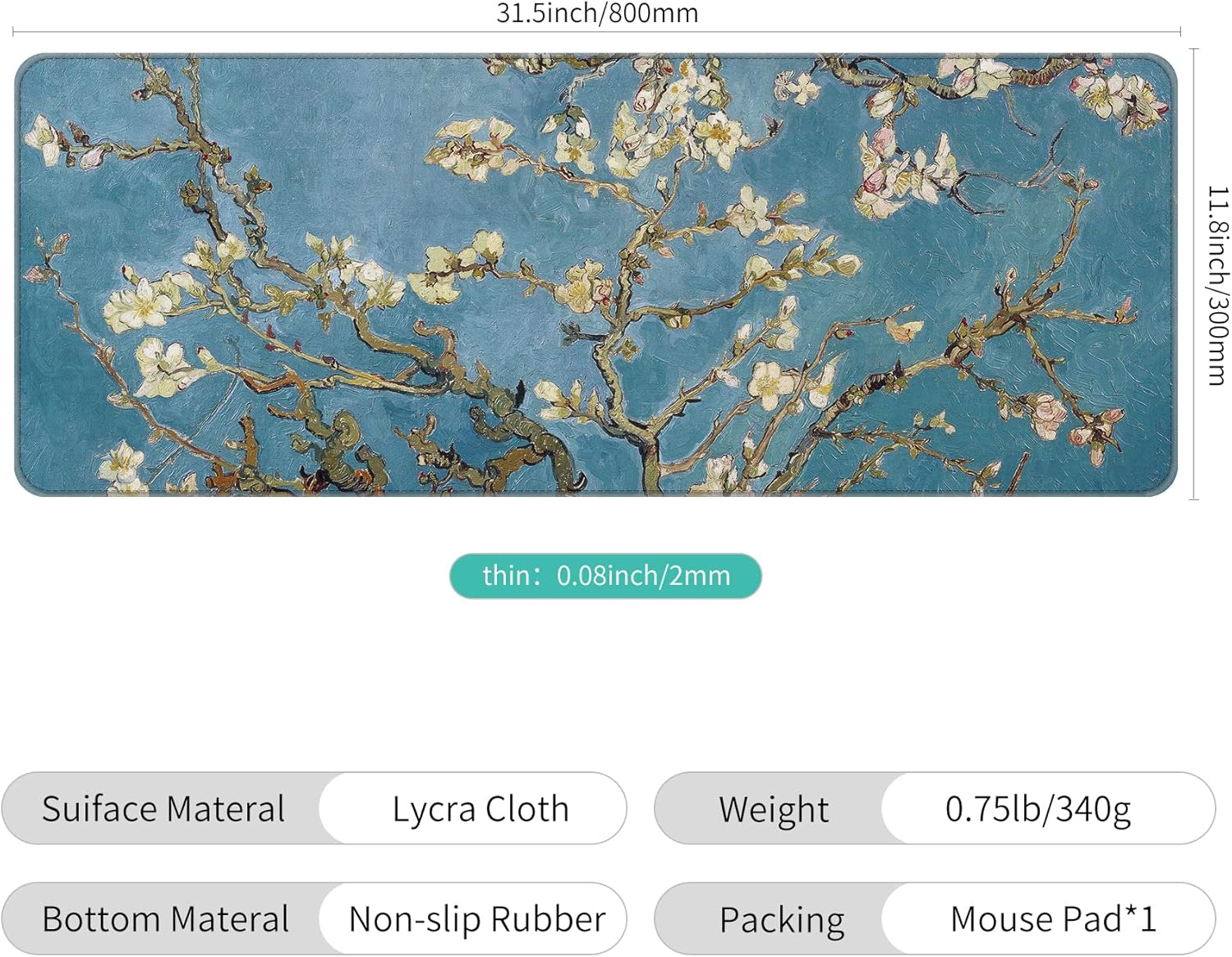 Dynippy Thin Extended Gaming Mouse Pad (31.5 * 11.8 * 0.08 inch) with Stitched Edges Large Mousepad Long XXL Keyboard and Mouse pad Desk Mat for Gaming Office & Home - Almond Blossom