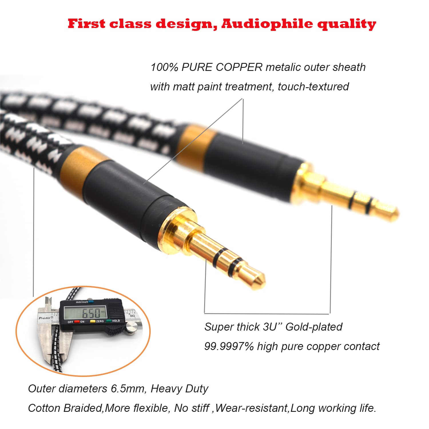 Aux Cord, Audiophile 3.5mm Stereo Audio Cable [1m (3.2 Feet), Silvered-Plated Copper core], Unbreakable and Great for Phone, Laptop, Tablets, Headphones, Cars and More