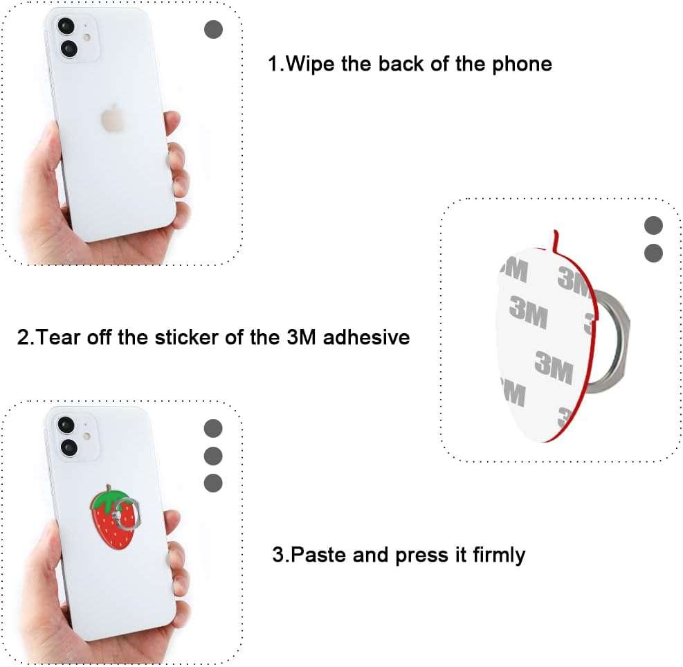 - UNIQUE DESIGN: This red strawberry Design phone ring holder has 3 different patterns, made of PC patch and metal ring. The new powerful washable adhesive is soft and does not damage the bonding surface.