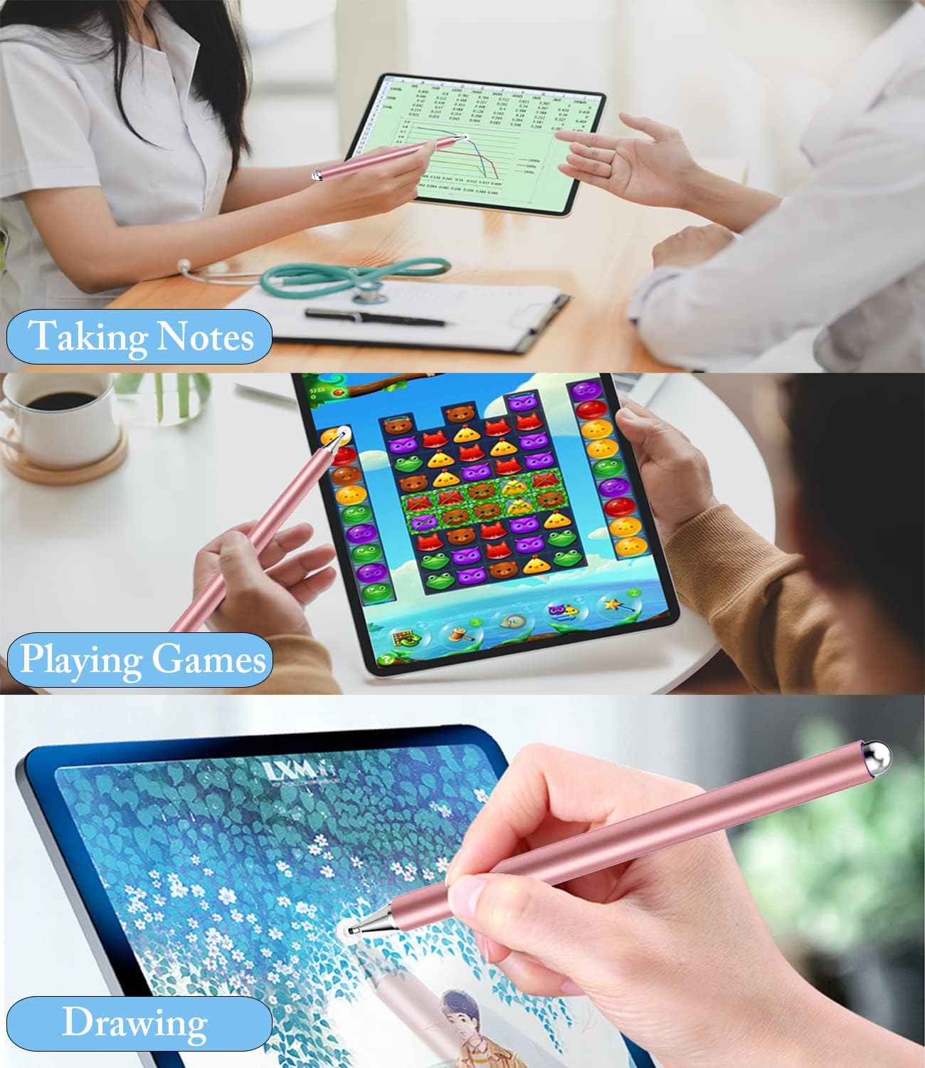 Stylus Pen for iPad, LUNTAK Stylus Pens for Apple/iPhone/Ipad pro/Mini/Air/Android/Microsoft/Surface All Capacitive Touch Screens Universal with 4 Replacement Tips (2 Pcs, Pink and Silver)