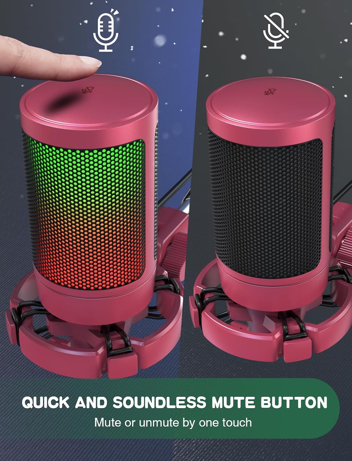- Special Feature : Red Color Mic/Changing RGB/Tap-to-Mute/Gain Knob/6.5ft Detachable USB-C Cable/Play and Plug/Desktop Mic Red Color Mic/Changing RGB/Tap-to-Mute/Gain Knob/6.5ft Detachable USB-C Cable/Play and Plug/Desktop Mic