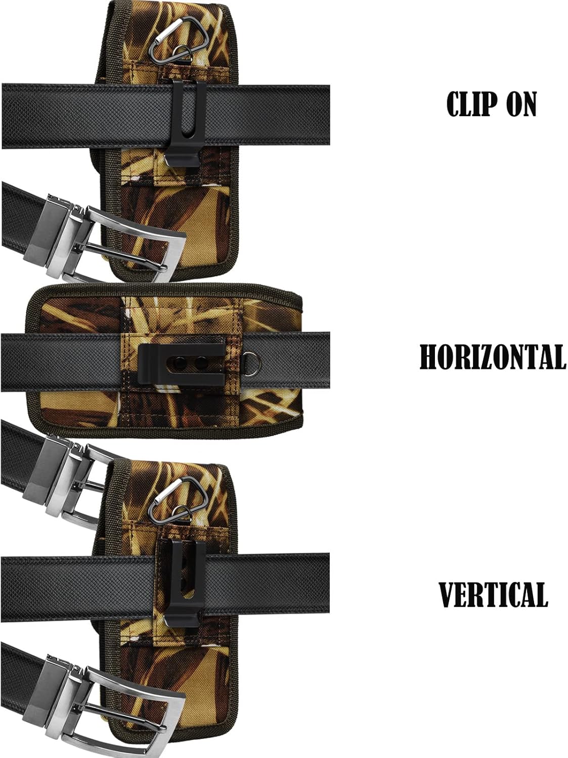 - ✦Metal Belt Clip & Belt Loop & Carabiner Hook: Pouch case has a fixed metal belt clip for durability . Belt loop to hold the carrying pouch in vertical way and horizontal way. Hook it up on any of your backpack or bags with the carabiner hanging ring design.