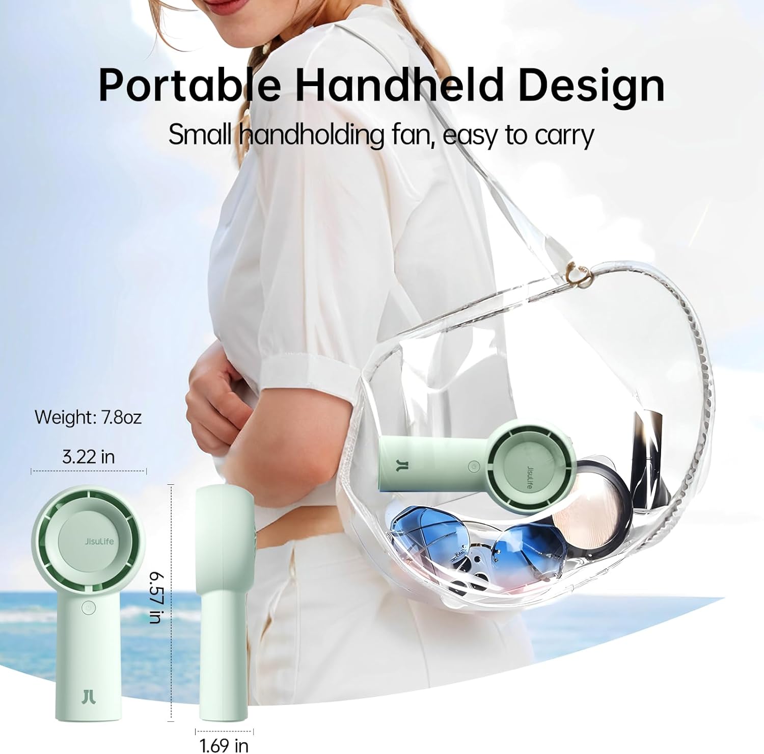 - Powerful & Energy-efficient: JISULIFE Personal Handheld Fan features a high-performance motor and optimized air duct to improve wind power while minimizing noise. Compared to other hand fans, it has a faster speed (6100 r/min) and stronger wind (4.8 m/s)