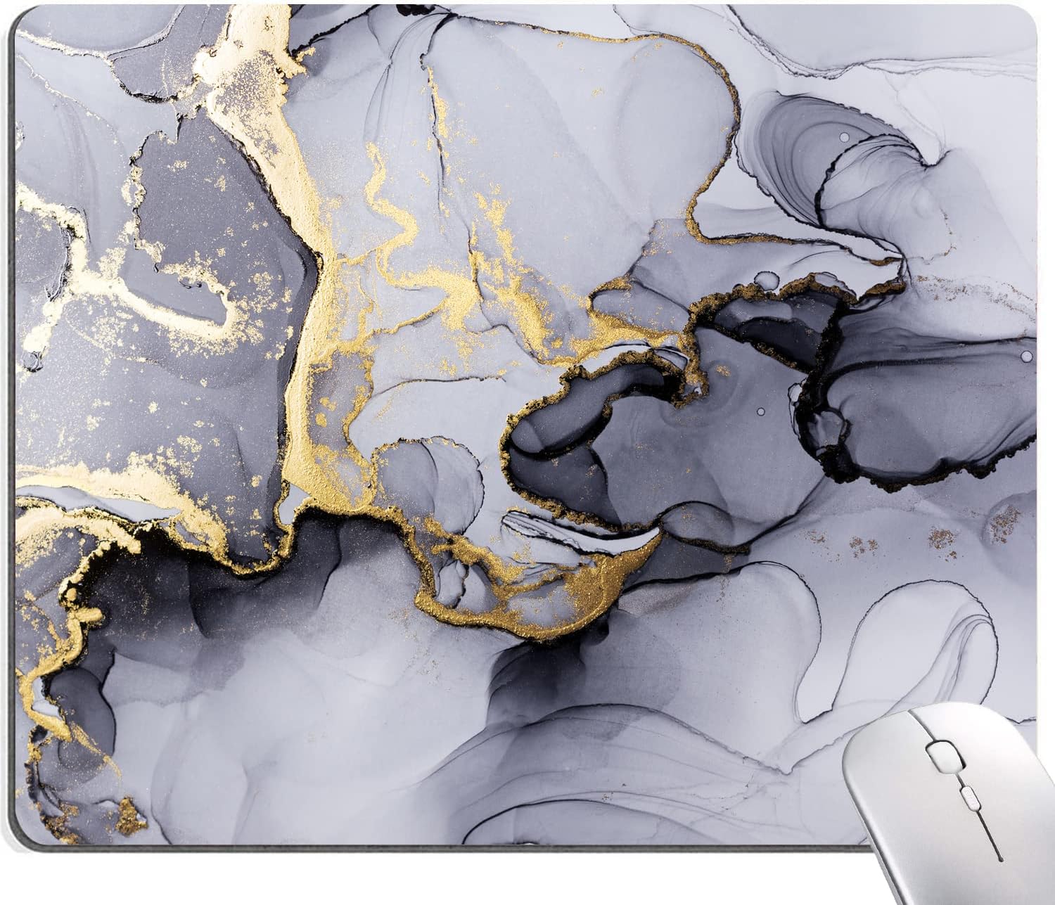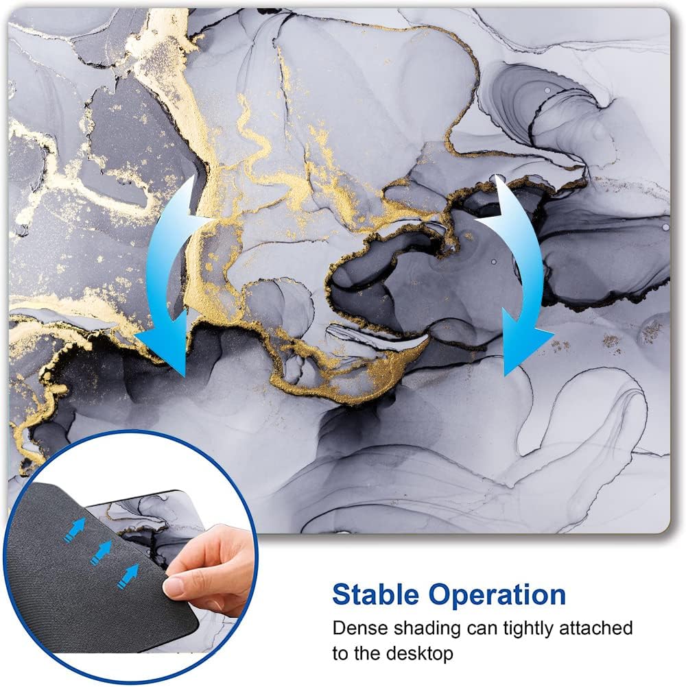 Mouse Pad, Cute Personalized Mouse Pads with Marble Design, Square Washable Cloth Mouse Mat, Gaming Office Home Non-Slip Rubber Base Computer Mousepad, Black Grey Gold Marble