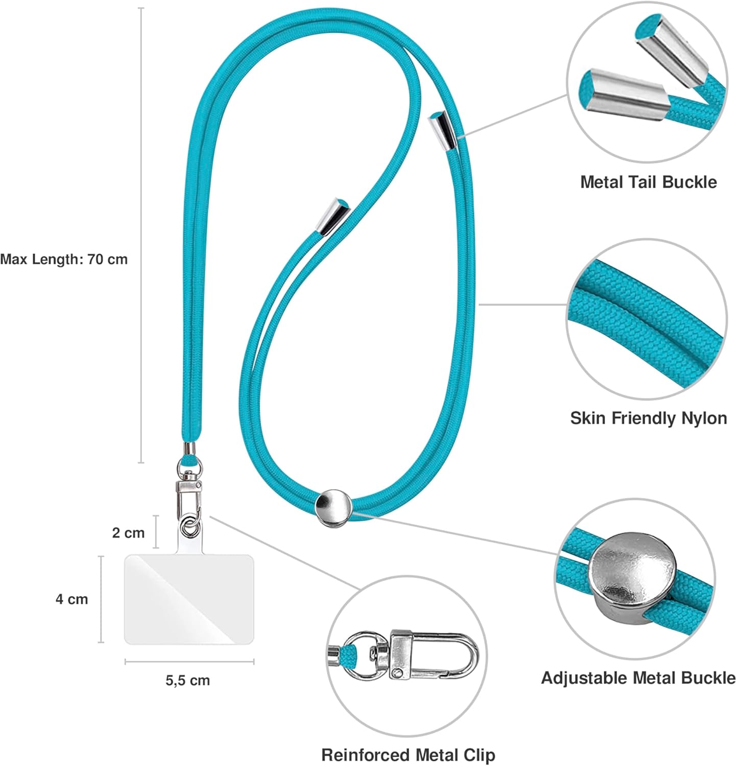 Cell Phone Lanyard [Turquoise] - Comfortable Universal Smartphone Lanyard - Easy to Use Neck Phone Holder [Clear Patch] - Adjustable Length Phone Strap Crossbody - Fits All Mobile Phones