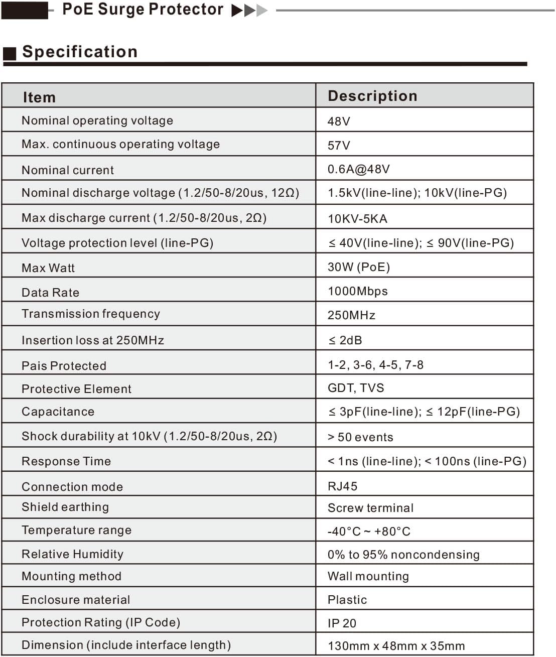 - Compatible with 802.3af/at ,support PoE+ 30w (0.6A/48V) and 10/100/1000 Base-T networks.