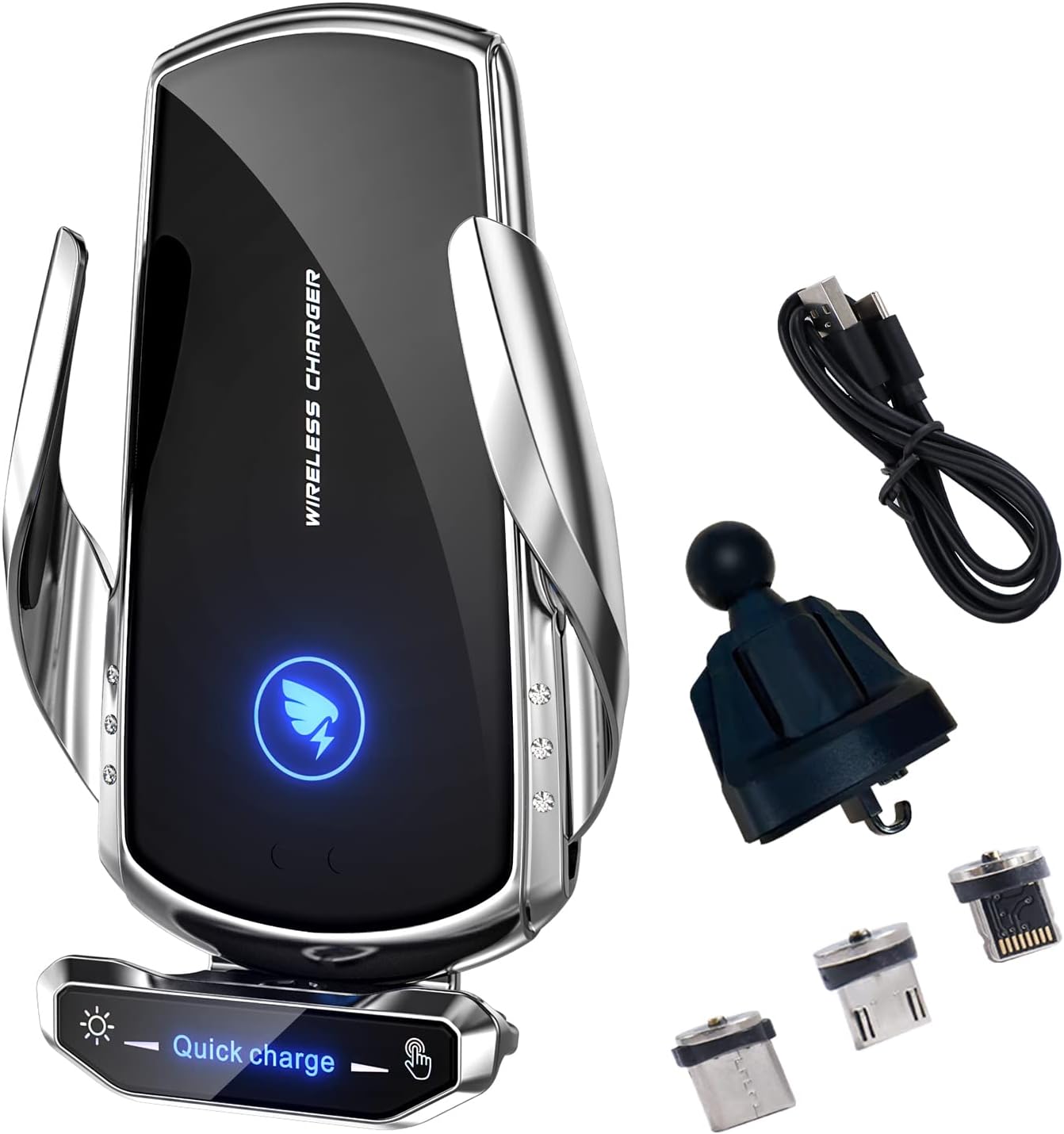 - INTELLIGENT DUAL CONTROL WIRELESS CAR CHARGER BRACKET:Interesting induction retractable car Phone Holder Mount Wireless Charging,Free 3 magnetic suction heads,The wireless charging car mount can clamp the mobile phone automatically. If your mobile phone supports wireless charging, Please link the data cable directly to the car wireless charging stand, and do not use the magnetic head to charge the mobile phone