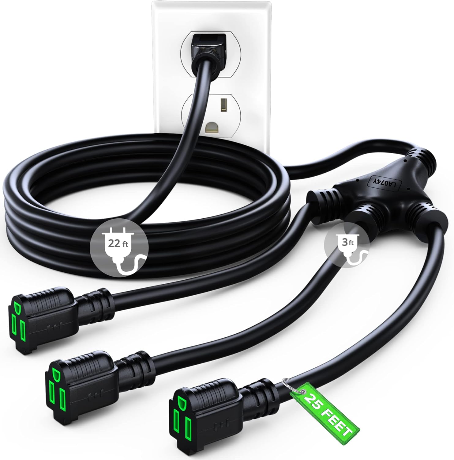 - Extension Cord Split Design: The 3-way splitter is the ideal way to turn a single outlet into three! Better than a power strip, each outlet gets its own cable allowing for more flexibility and better organization.