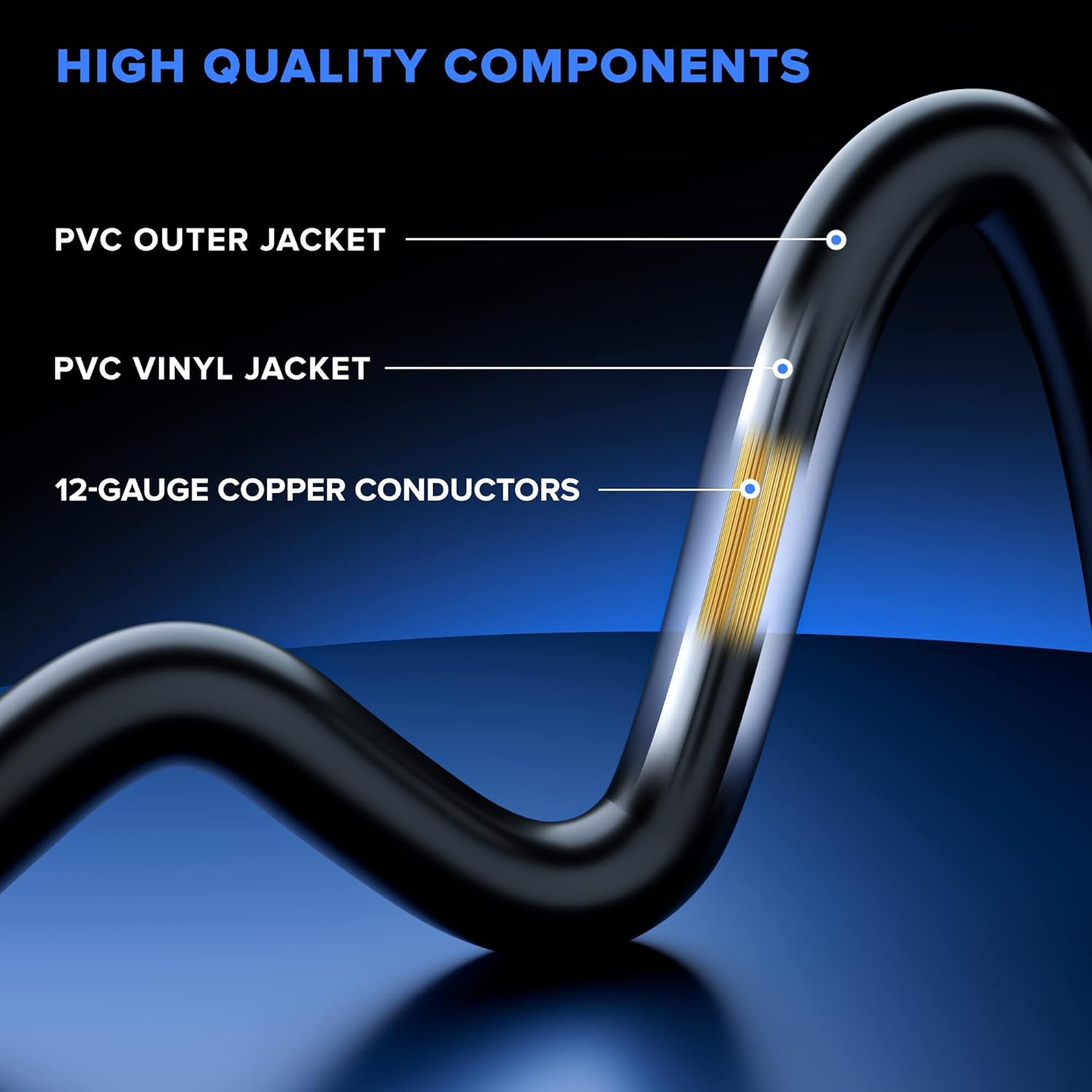 - Extension Cord Heavy Duty Splitters 25ft. Main cord length: 19ft, branch cord length: 6ft, crafted with PVC jacket, 12-gauge copper Wires, water-resistant outdoor extension cord. SJTW rating meaning the cord is extremely tough and can resist tearing, abrasion, moisture and exposure to sunlight (avoid the plug and the outlet from getting wet)