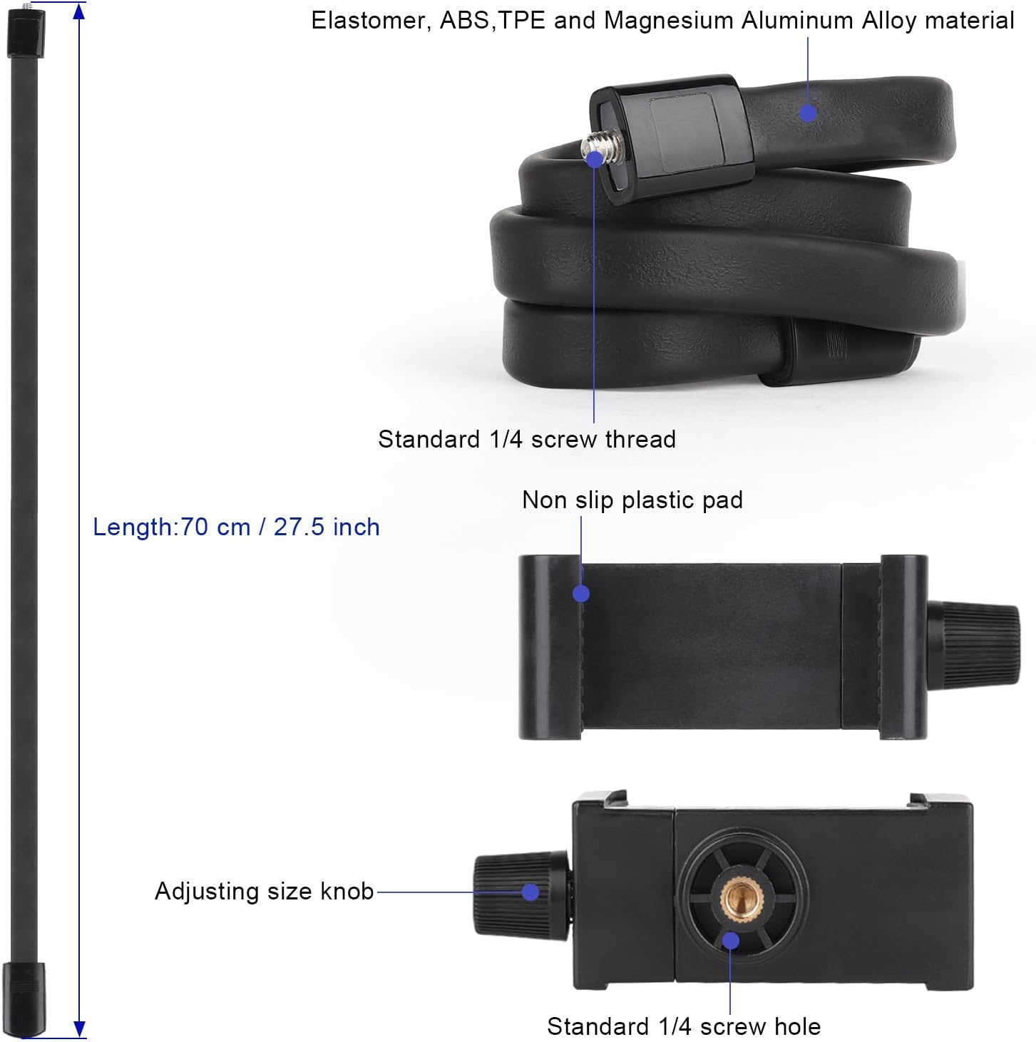 Portable Flexible Cell Phone Holder Stand for Treadmill/Stroller/Elliptical/Car/Bike/Shopping Cart,Compatible with 3.5~7.5" iPhone/Smartphone, 27.5 inch/70cm Long Arm for Cellphone