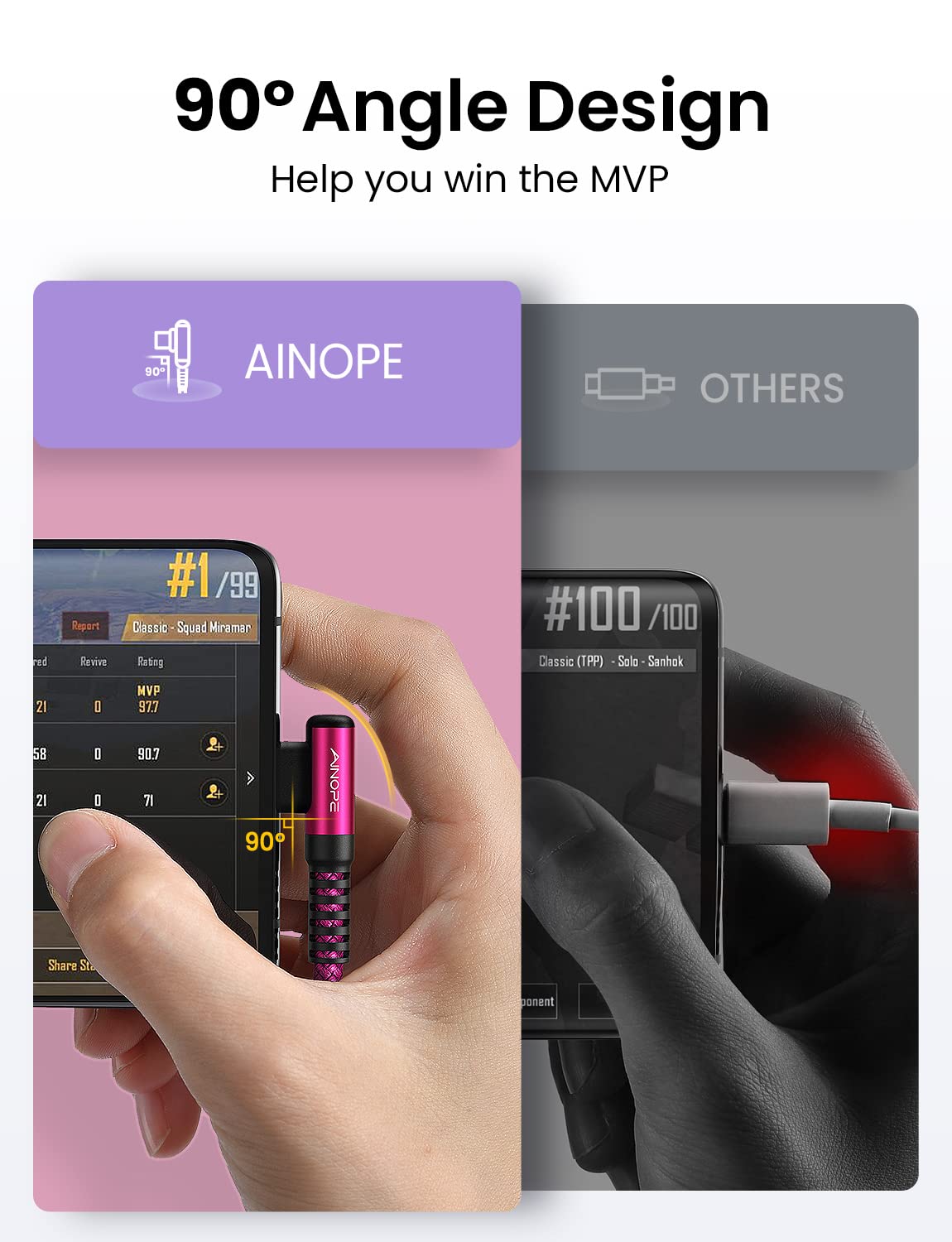 - [Upgraded Exclusive Right Angle Design] This right angle type c charging cable fast charge with an innovative 90 degrees " L " design. It's user-friendly design more convenient and comfortable for playing games, watching videos, reading e-books when you charging. γ NOTE: The thickness of the compatible mobile phone case charging port is 5.5mm.γ