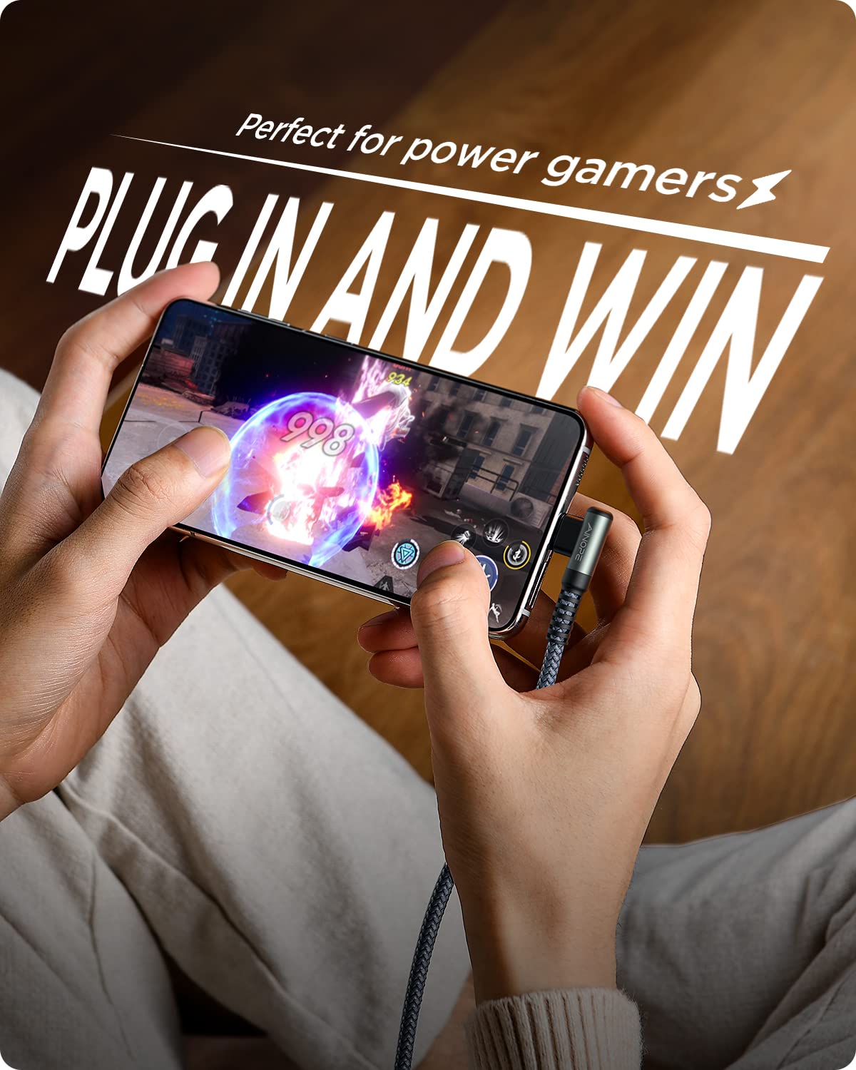 - [Upgraded Exclusive Right Angle Design] USB Type C Cable with an innovative 90 degrees " L " design. It's user-friendly design more convenient and comfortable for playing games, watching videos, reading e-books and online shopping when you charging. [ NOTE: The thickness of the compatible mobile phone case charging port is 5.5mm.]