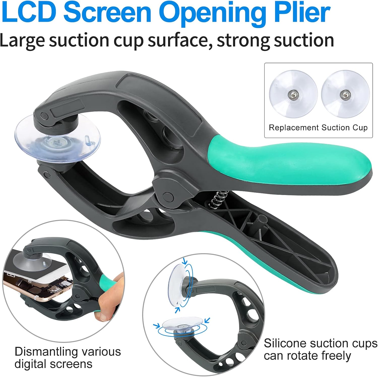 - 【Opening Lcd Screen Suction Cup Plier】This handy tool allows you to open and remove the LCD screens of mobile phones, smartphones, tablets, laptops and more to assist in repairing broken devices.