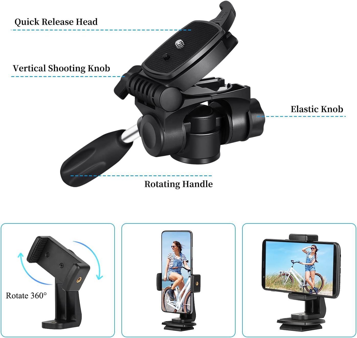 - ă 3-Way Pan Head 360° Rotationă JOILCAN camera tripod with stable smooth ergonomic 3-way pan head: headlock, pan lock, tilt lock, satisfy all the needs of vertical, horizontal, and overhead photography, et. Camera tripod stand with zippered storage bag