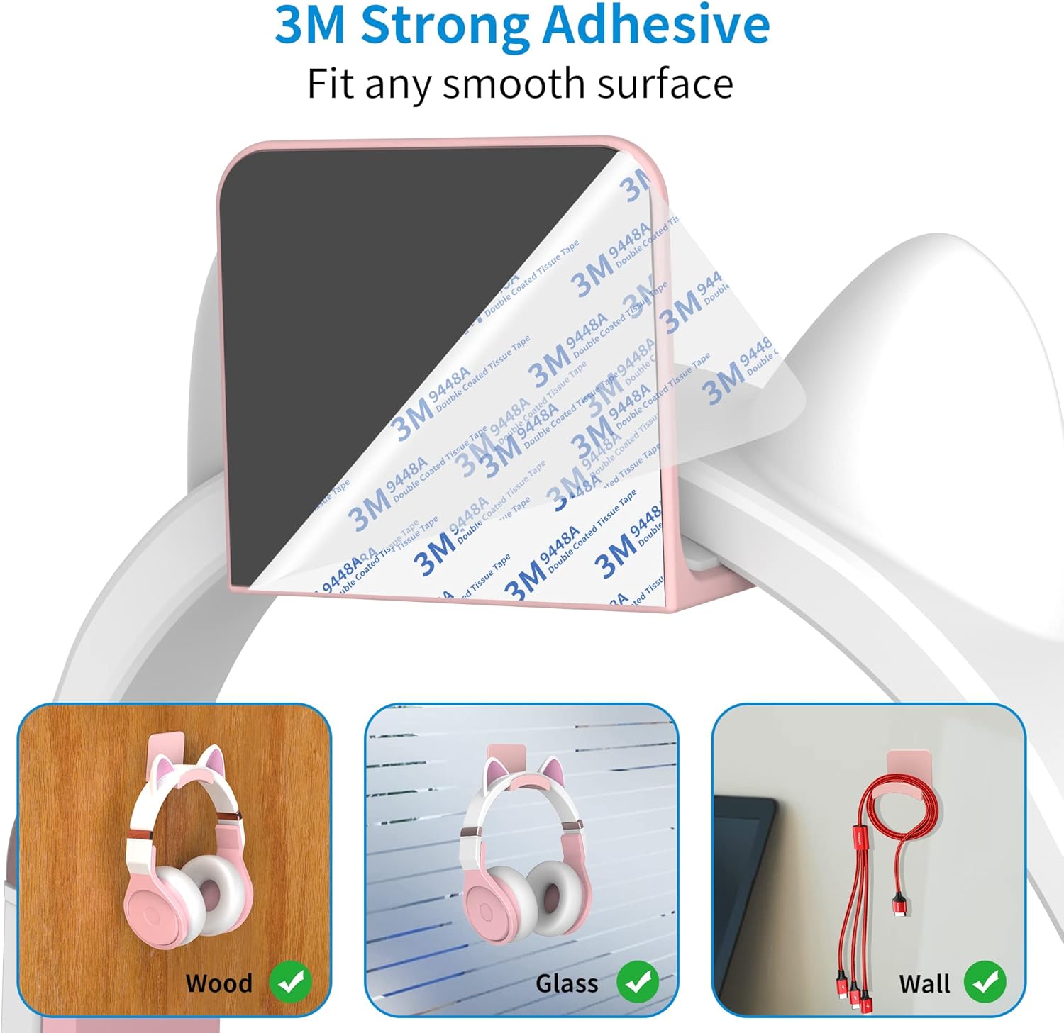 - Application Occasions: The sticky Headphone Holder with compact & sleek deisgn, offers black/white/pink three colors options to match your headphones. The holder can be mounted on the side of desk, cabinets, nightstand, bedside, headboard, table, dresser, drawer, side of PC case, mounted on wall near TV, Computer, or mounted behind your monitor, holding your headset firmly and does not take up any desk space. Quick easy access to headset when needed. Great for home, bedroom, office, studio, or gaming or entertainment setup, or classroom.