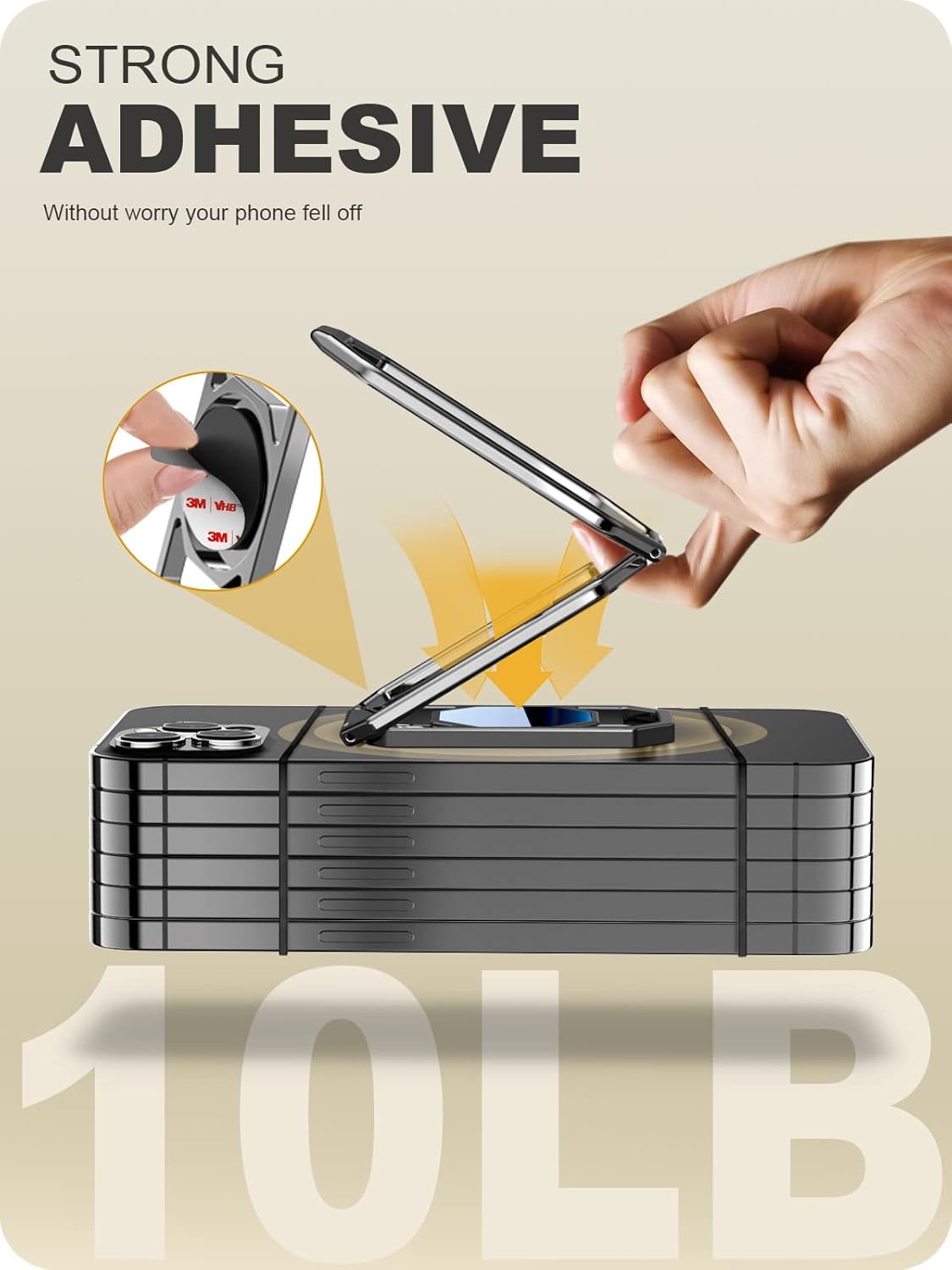 - ใ2025 New Version 3M Tape to Guard Your Phoneใ This iphone kickstand employs 2025 new version 3M tape. This strong tape ensure it sticks tightly to your phone and hold it strongly to reduce the risk of dropping it from your hand accidentally. As usual, keep your collapsible iphone ring holder grip functions like text or selfie with one hand. It will take 100% effect after 48 hours in the first stick and it will leave no adhesive residue on your phone after you removed it.
