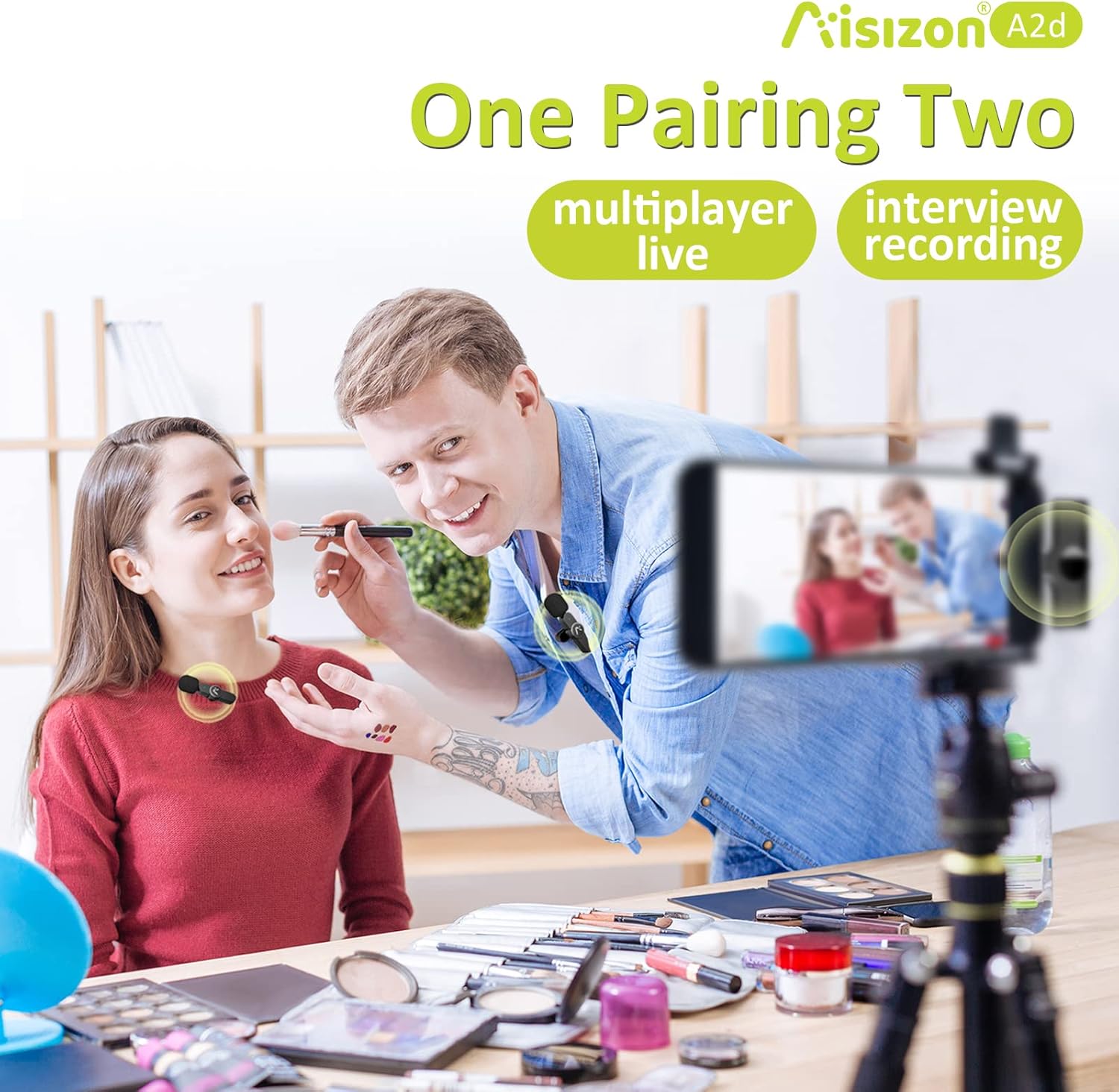 - Plug and play: Aisizon A2d wireless lavalier microphone is directly applicable to Android phone and iPhone, simple operation allows you to easily complete record, video recording, live broadcasts.