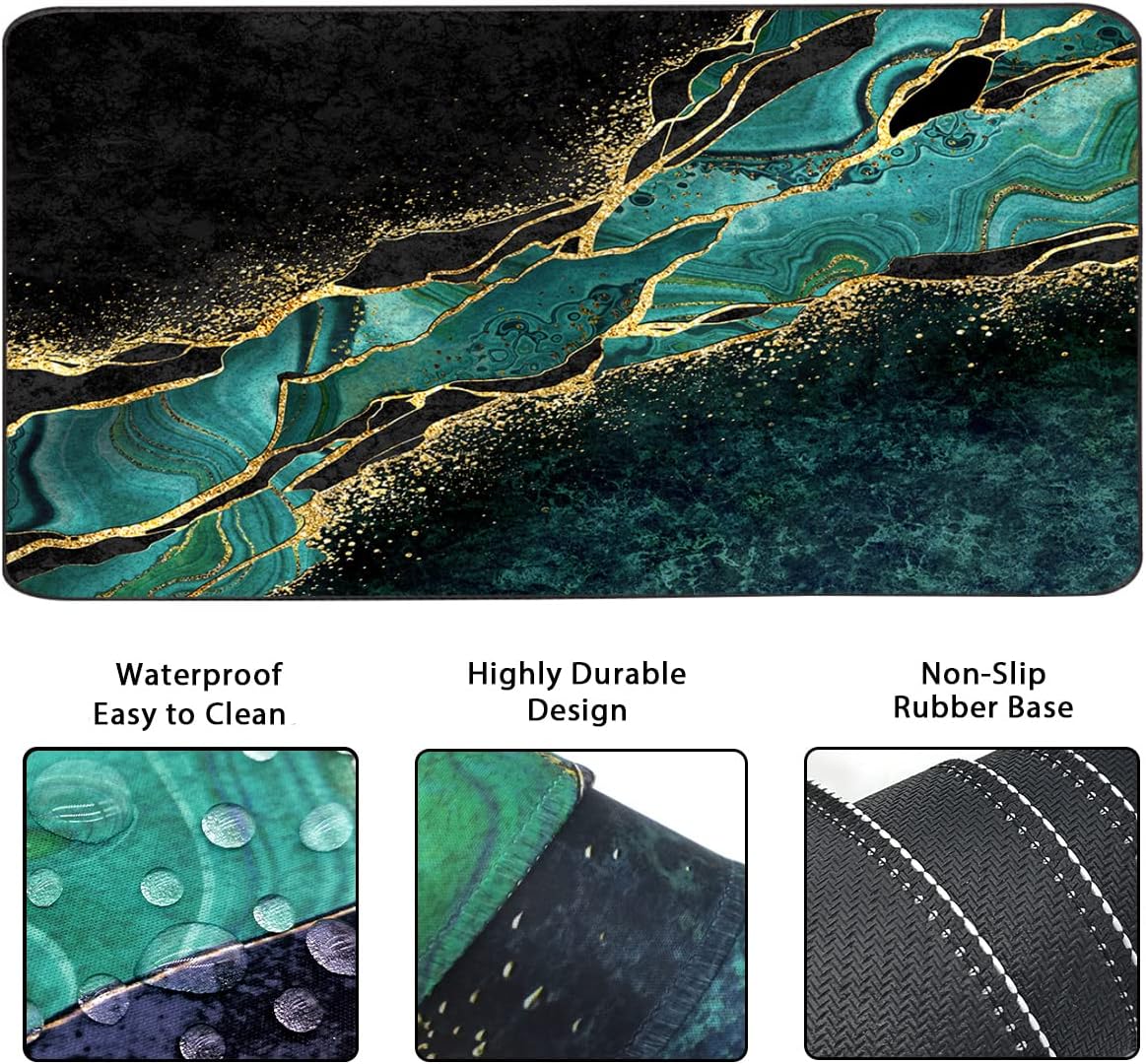 - 【Slip-Resistant Backing】: The soft and dense slip resistant rubber base keeps the pad firmly in place, it can effectively prevent the mouse and keyboard from sliding and moving for stable operation. Works well on all types of desks including wood, glass, leather, metal, marble desk and more. While sturdy, the entended desk pad is flexible enough to be rolled up for easy transport, to move around so you can work or game wherever you want.