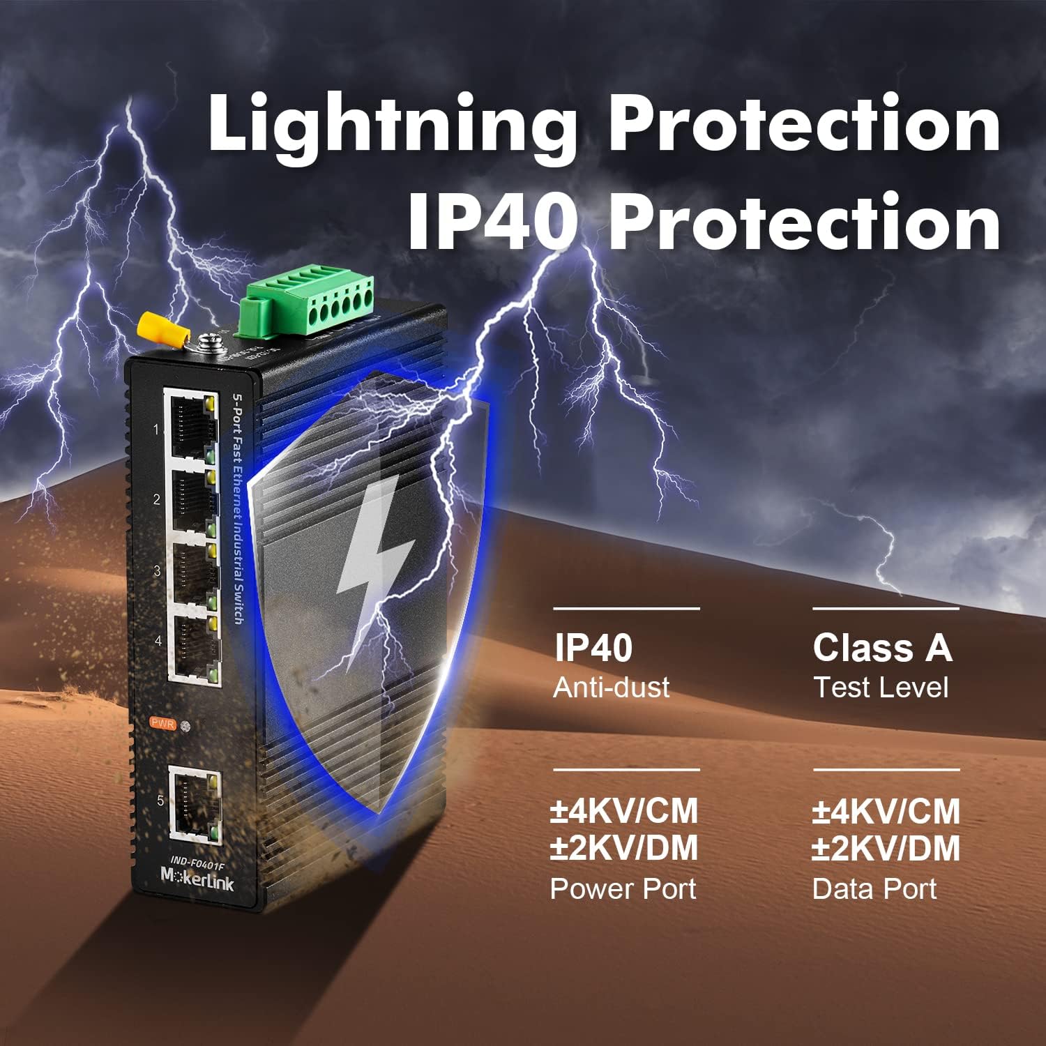 - IP40 protection grade, working temperature -40~75°C(-40~185°F), super robustness, anti-lightning, anti-static and anti-overload protection, adapt to various harsh environments