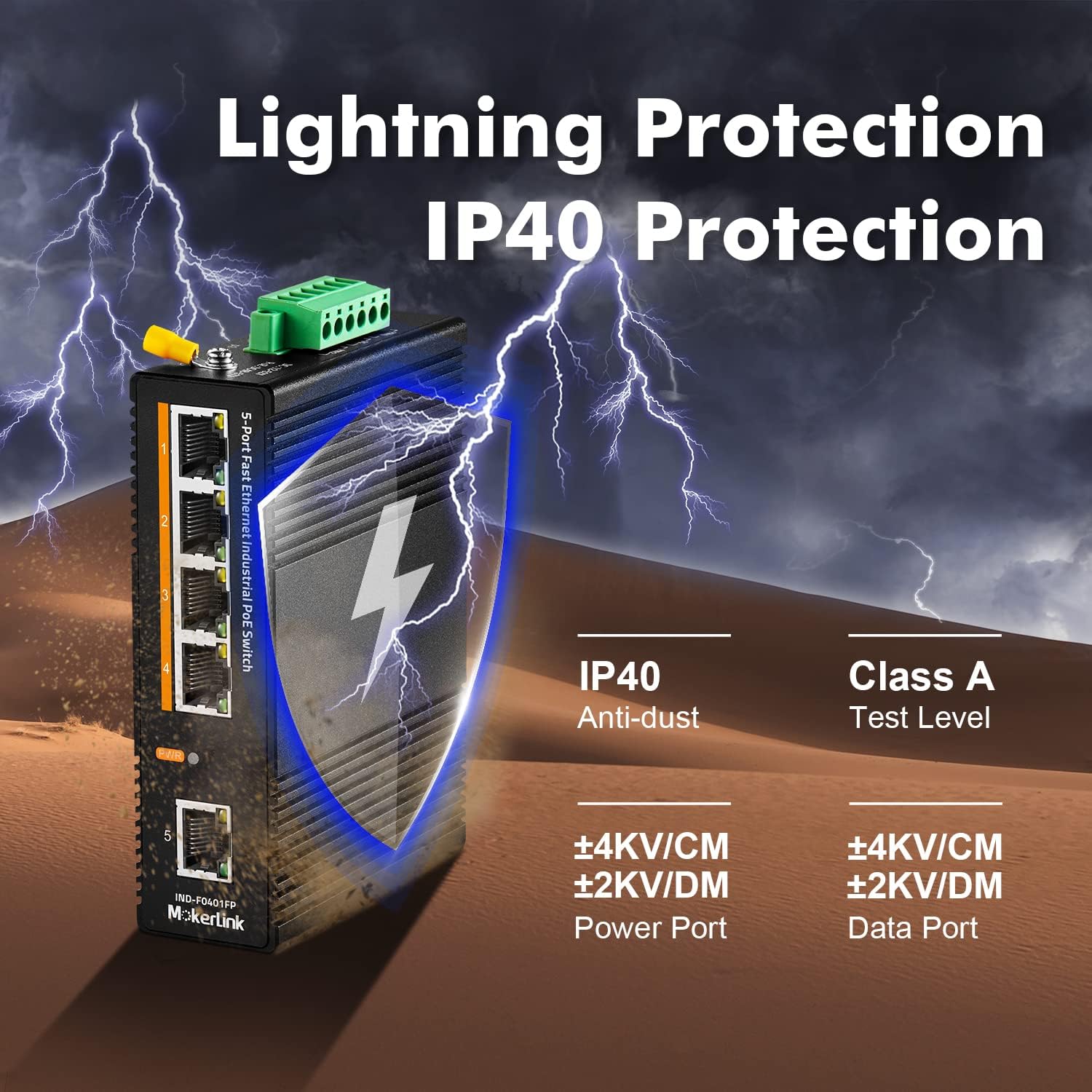 - IP40 protection grade, working temperature -40~75°C(-40~185°F), super robustness, anti-lightning, anti-static and anti-overload protection, adapt to various harsh environments