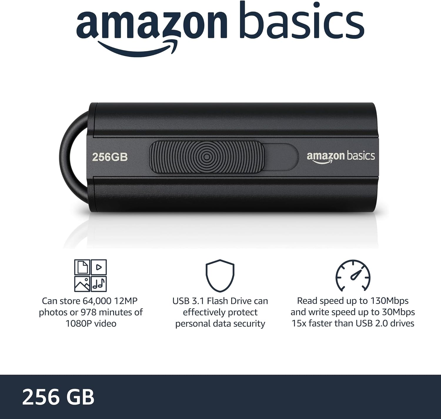 Amazon Basics 256 GB Ultra Fast USB 3.1 High Capacity Flash Drive for Data Transfer and Storage, Black