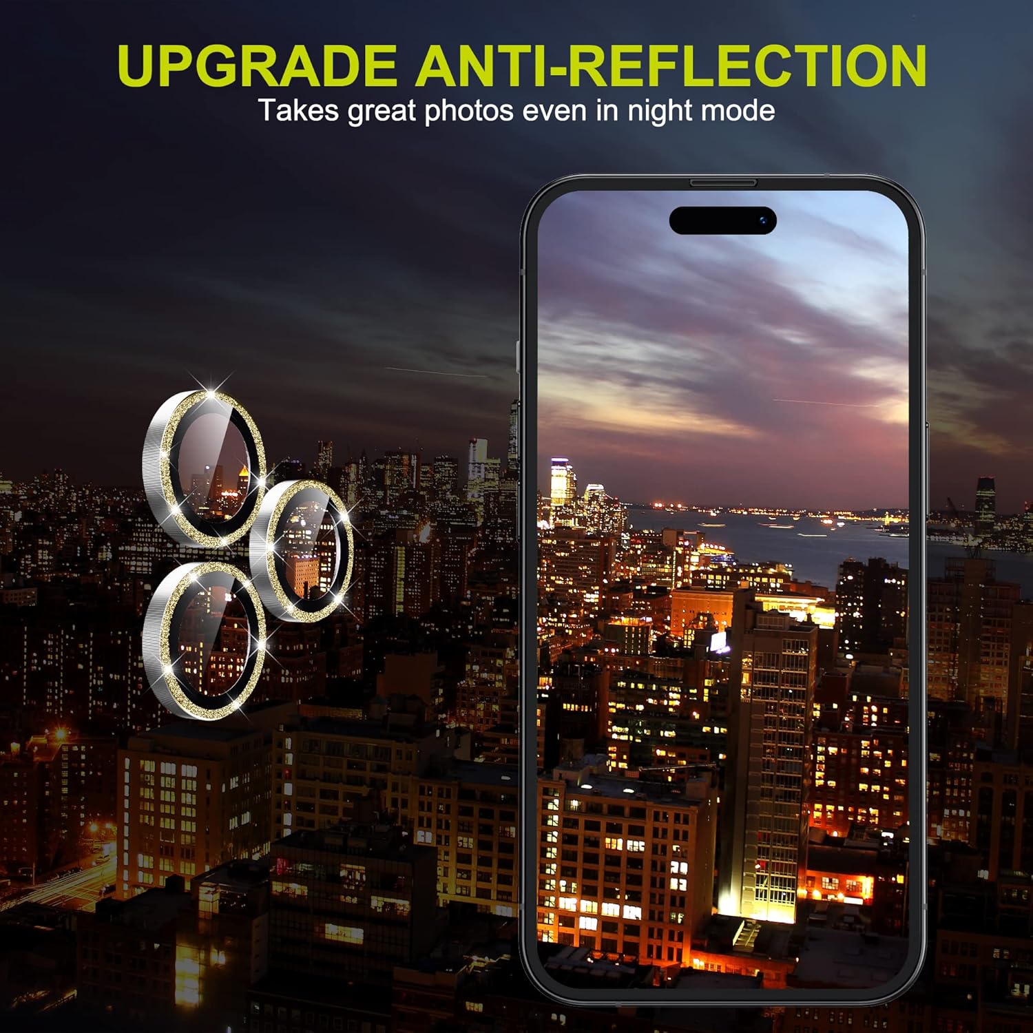 WSKEN [Gold Glitter] for iPhone 14 Pro/iPhone 14 Pro Max Camera Lens Protector,[Night Shooting Mode] HD Tempered Metal Glass Camera Screen Protector Cover Film Accessories