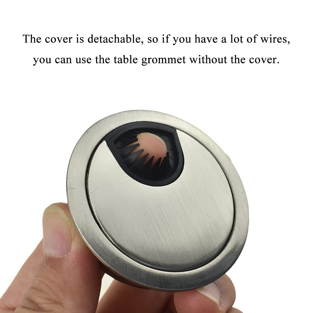 HAHIYO 2Pcs 2Inch/50mm Brushed Silver Zinc Alloy Desk Grommet Wire Grommet Cable Management Cord Hole Cover Desk Wire Hole Insert Wire Organizer for Computer Office Home School Equipment Systems
