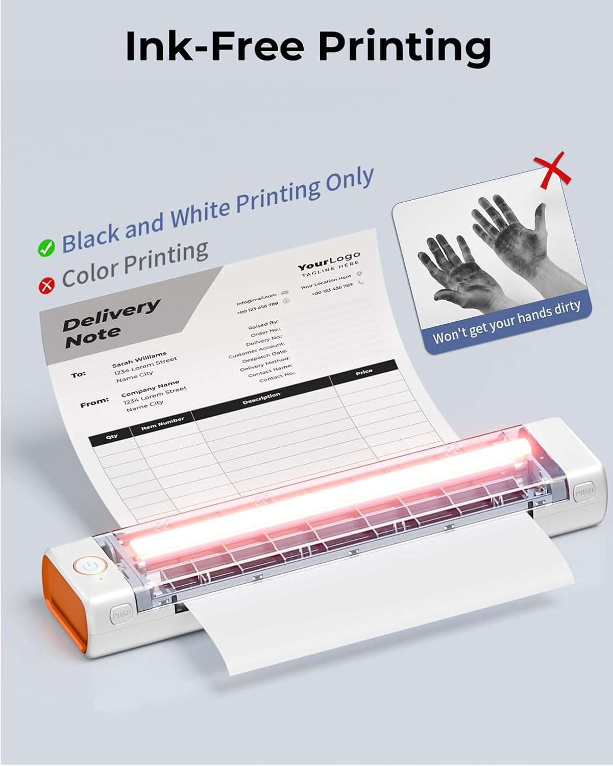 - Inkless Printer [nkless Printing]: Bluetooth Printer use thermal technology - doesn't require ink, toner, or ribbons, no ink-related blockages and cleaning issues. Instead, you only need to replace the thermal paper and you're good to go, each thermal paper costs only $0.12, cheaper than ink cartridges + paper. (Note: different from a traditional printer, requires a special paper (Thermal Paper) in order to utilize it., not support regular copy paper)