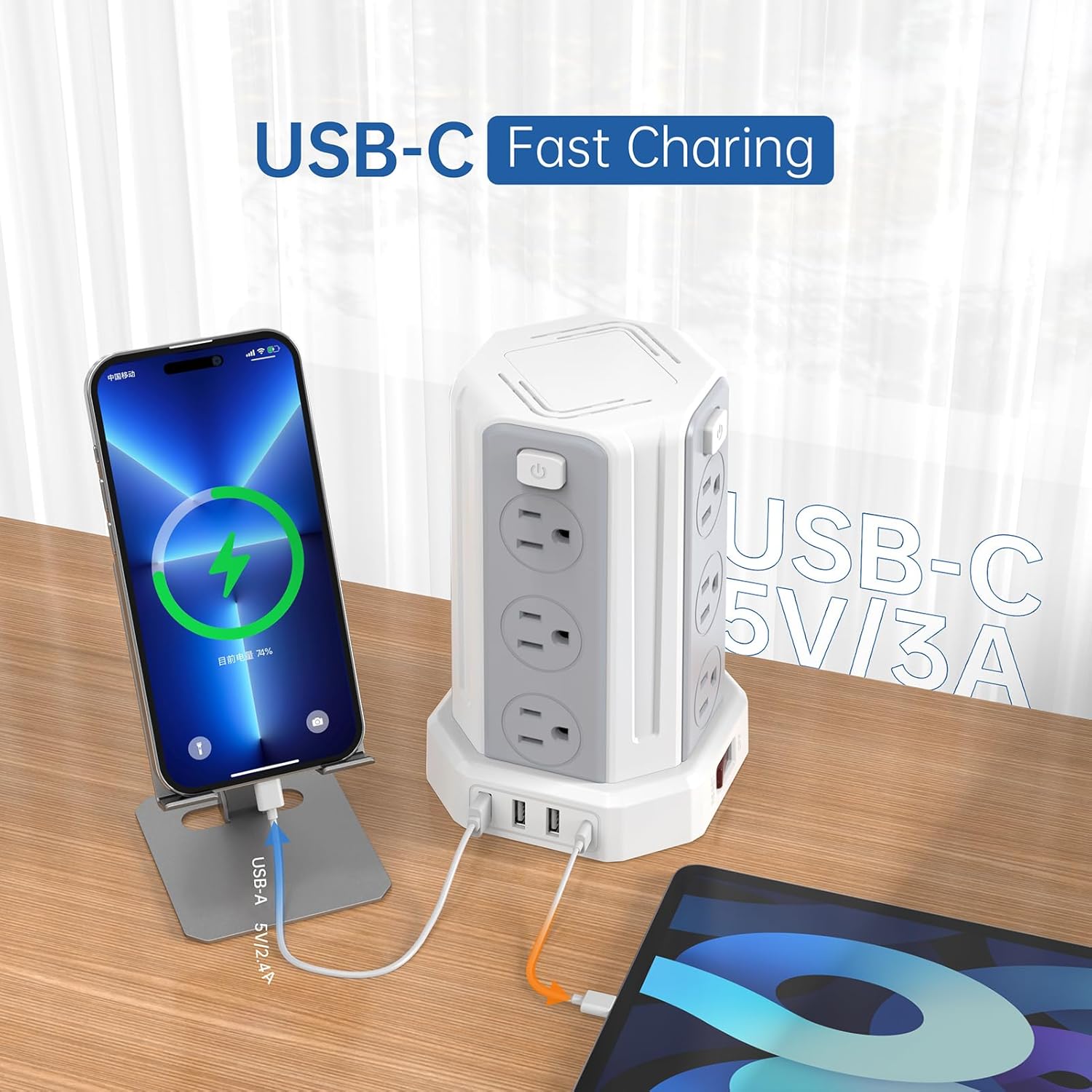 - 【Ultimate Charging Hub: USB Power Strip + 12 AC Outlets】 Power your entire workstation with this USB power strip’s 16-in-1 capacity: 12 widely spaced outlets (4-side tower design) handle large adapters, while 15W USB-C and 12W USB-A ports fast-charge phones, tablets, and gadgets. The surge protector with USB ports outperforms traditional extension cords for tech-heavy setups.