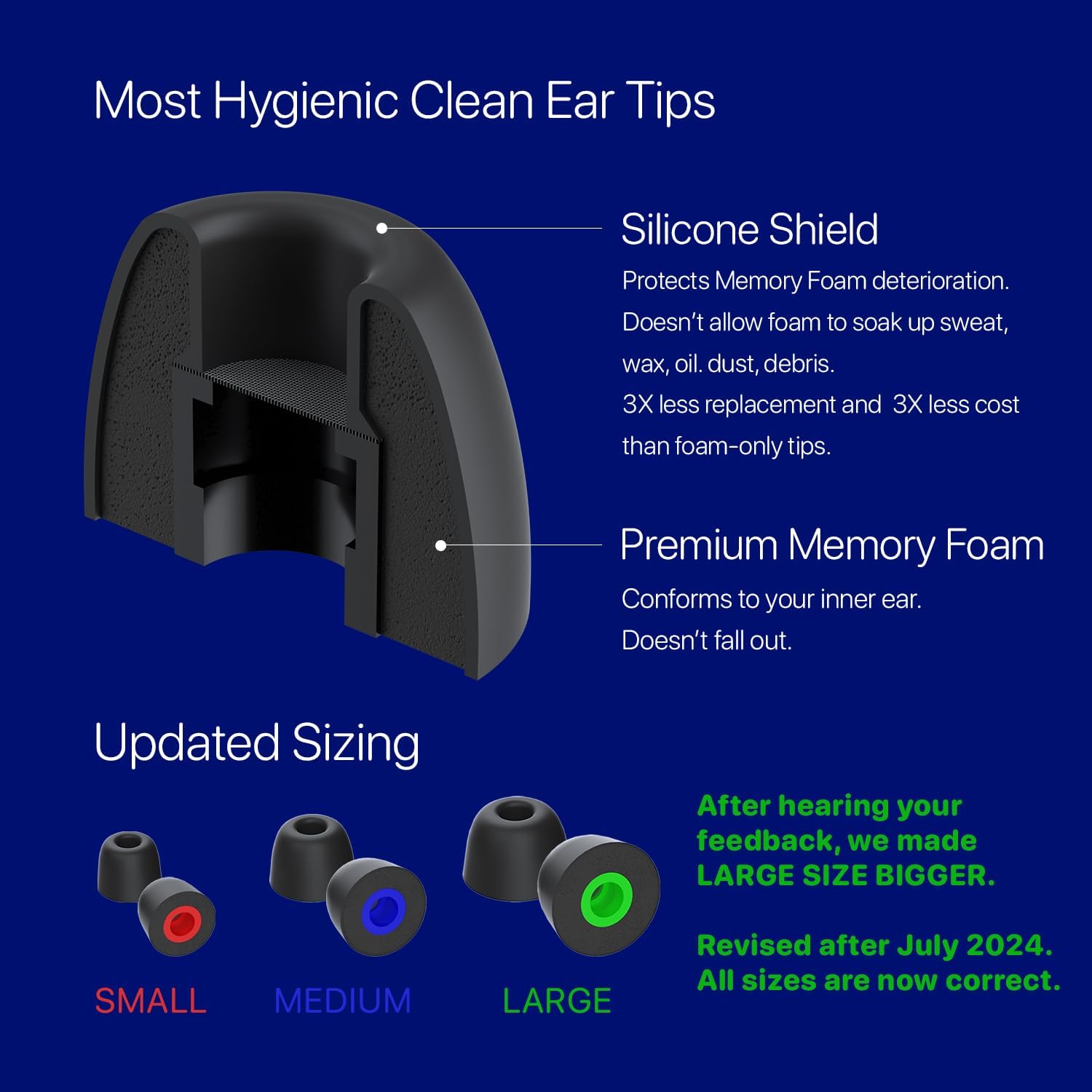 - [Silicone Shield] Durable protective layer over the memory foam from soaking sweat, wax, and oil. Last 5X lasting longer. Less replacements than memory foam only. [Ultra Soft Memory Foam] Conforms and expands to your inner ear. Alleviates any pain from silicone-only tips.