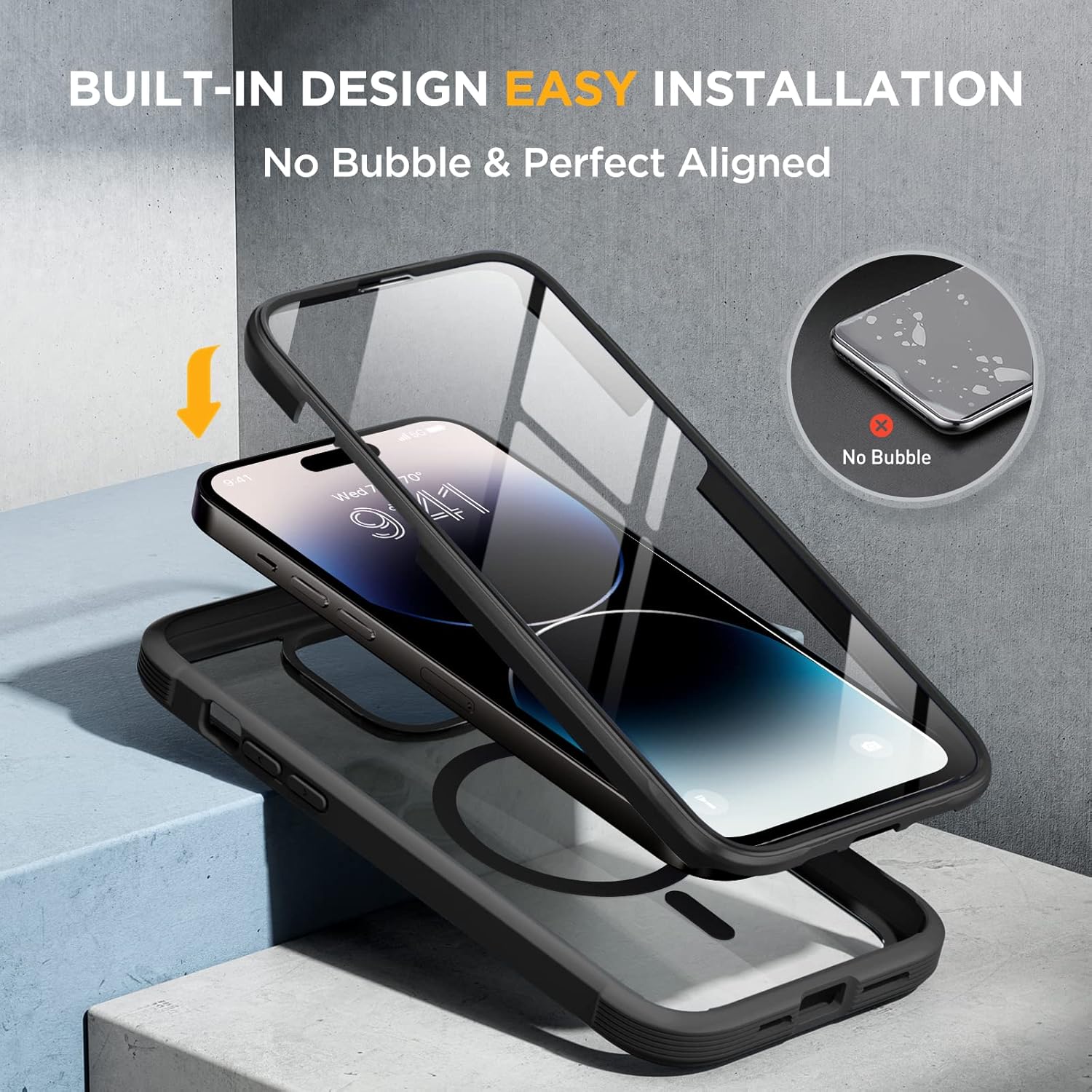 - [9H Glass Screen Protector & Camera Protector] Built-in premium 9H ultra-thin HD tempered glass screen protector and camera protector work for iPhone 14 pro max. Featuring maximum protection from scratches, scrapes, bumps while maintaining original response sensitivity.