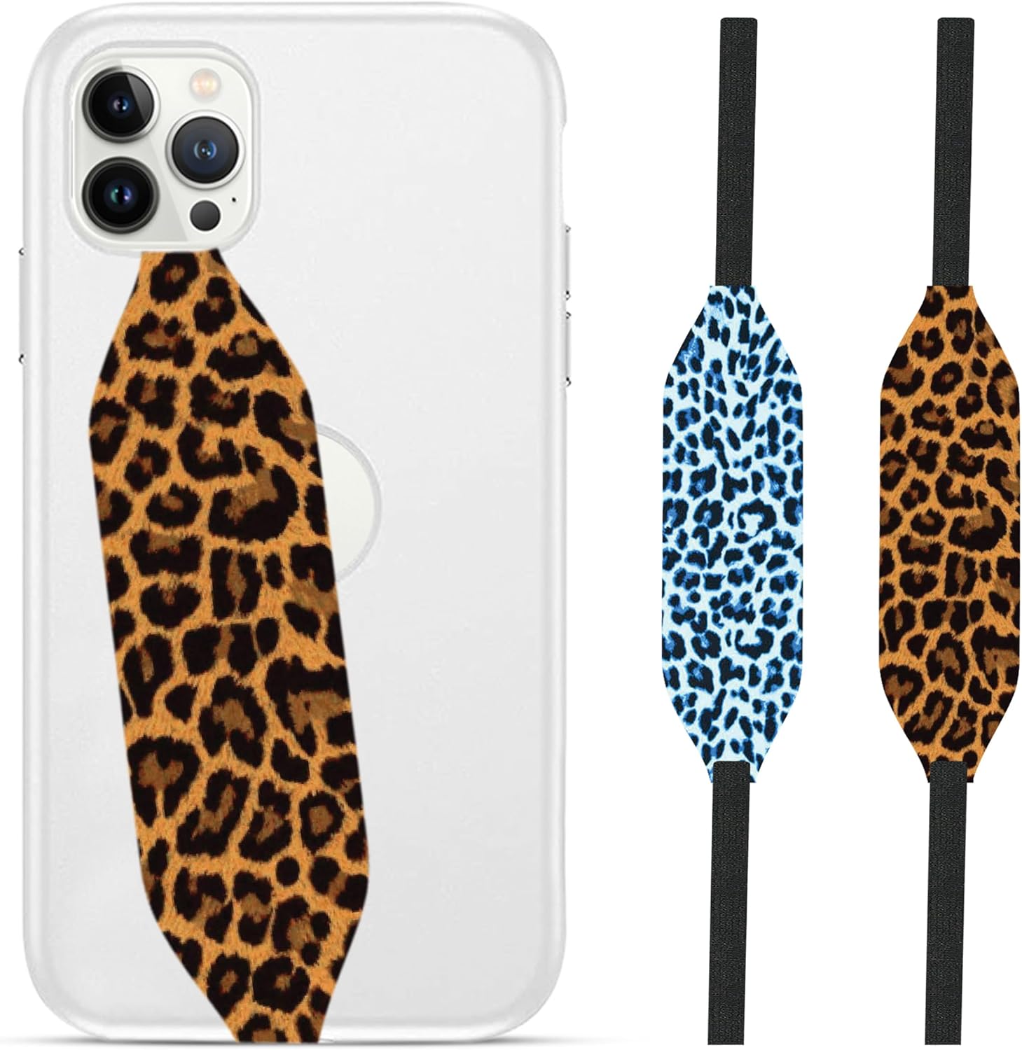 Phone Grip Strap - Pack of 2 Reversible Finger Holder for Phone Back, Customizable Anti-Slip Design, Wireless Charging Compatible Detachable Holder for iPhone - Blue & Gold Cheetah
