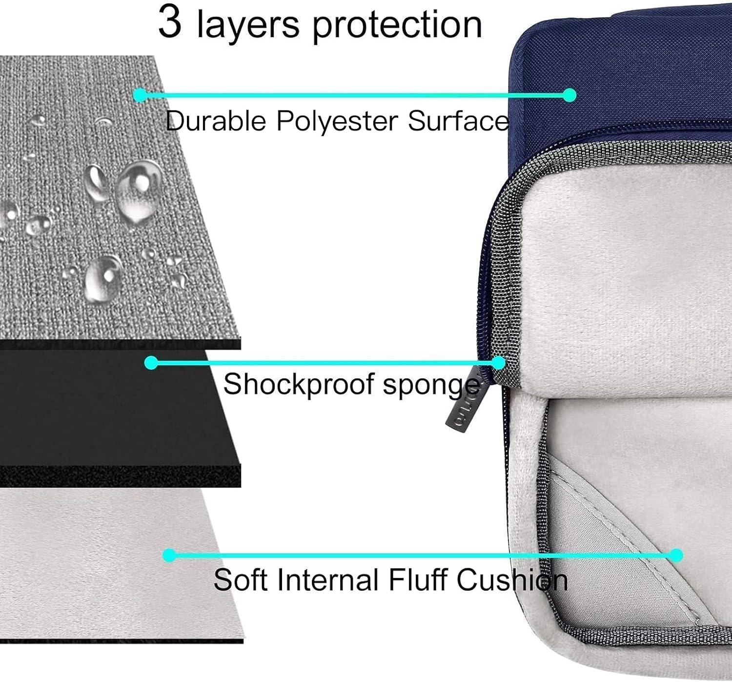 - The 360 degree protective shockproof laptop sleeve with handle carrying bag internal dimension: 13.39 x 9.25 x 0.79 inches (L x W x H); external dimension: 13.98 x 9.84 x 0.79 inches (L x W x H). The front side pocket dimension: 11.61 x 9.25 inches (L x W). Made of polyester material, protect your laptop against accidental spills. Slim and lightweight, does not bulk your device up and can easily slide into your briefcase, backpack or other bag. Ideal for business, daily and travel.