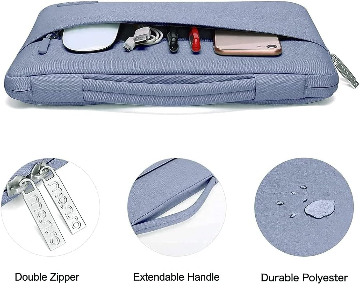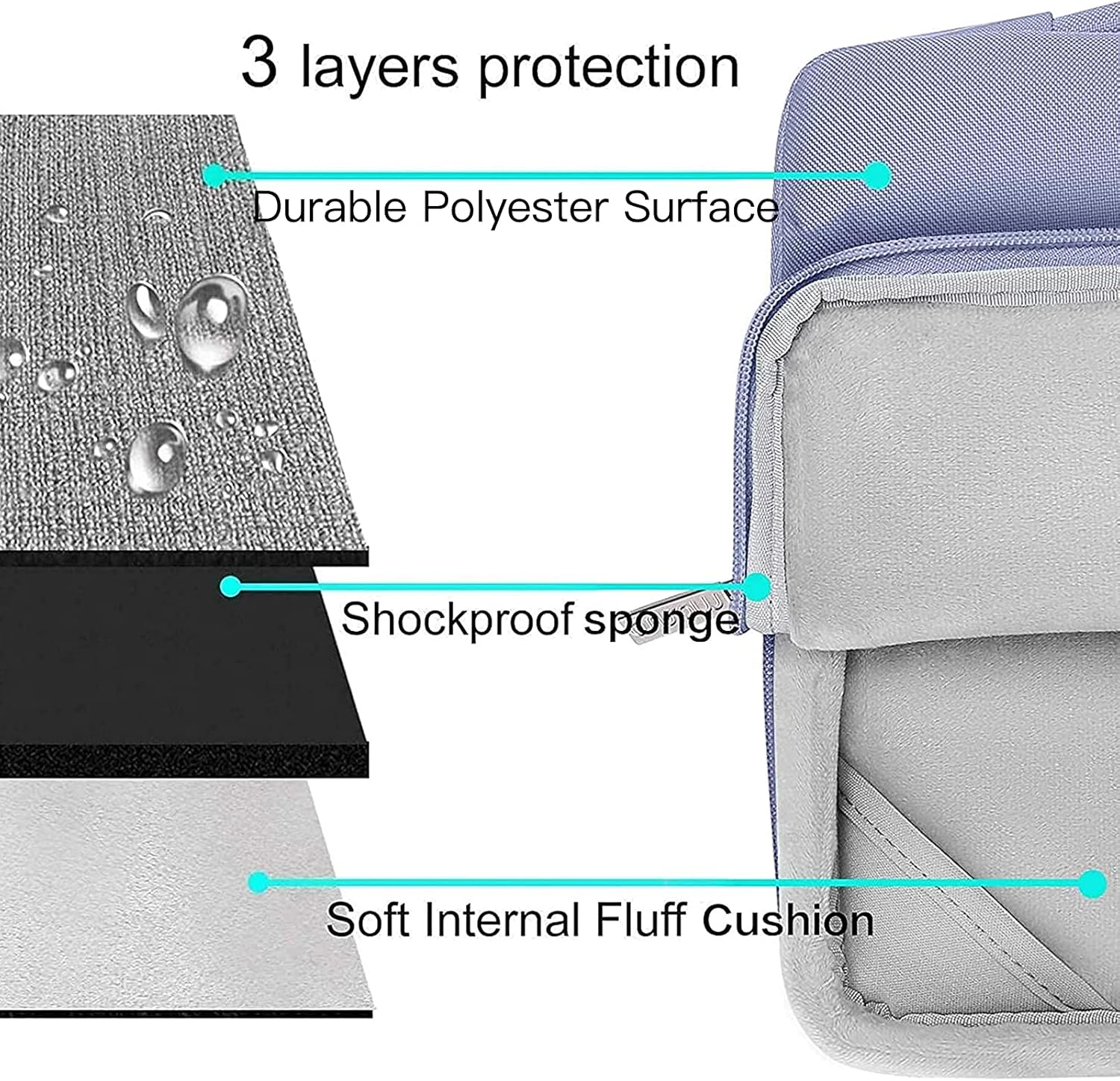 - The 360 degree protective shockproof laptop sleeve with handle carrying bag internal dimension: 13.39 x 9.25 x 0.79 inches (L x W x H); external dimension: 13.98 x 9.84 x 0.79 inches (L x W x H). The front side pocket dimension: 11.61 x 9.25 inches (L x W). Made of polyester material, protect your laptop against accidental spills. Slim and lightweight, does not bulk your device up and can easily slide into your briefcase, backpack or other bag. Ideal for business, daily and travel.