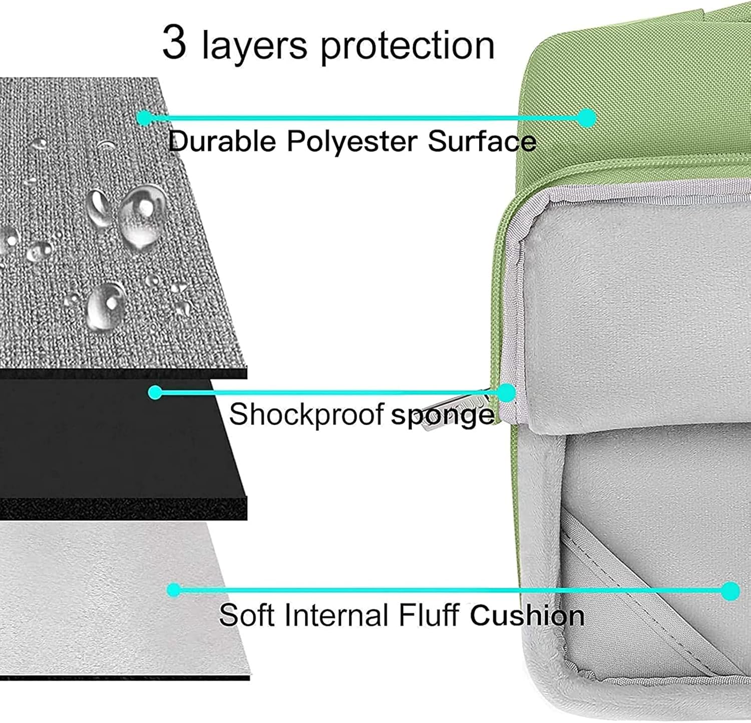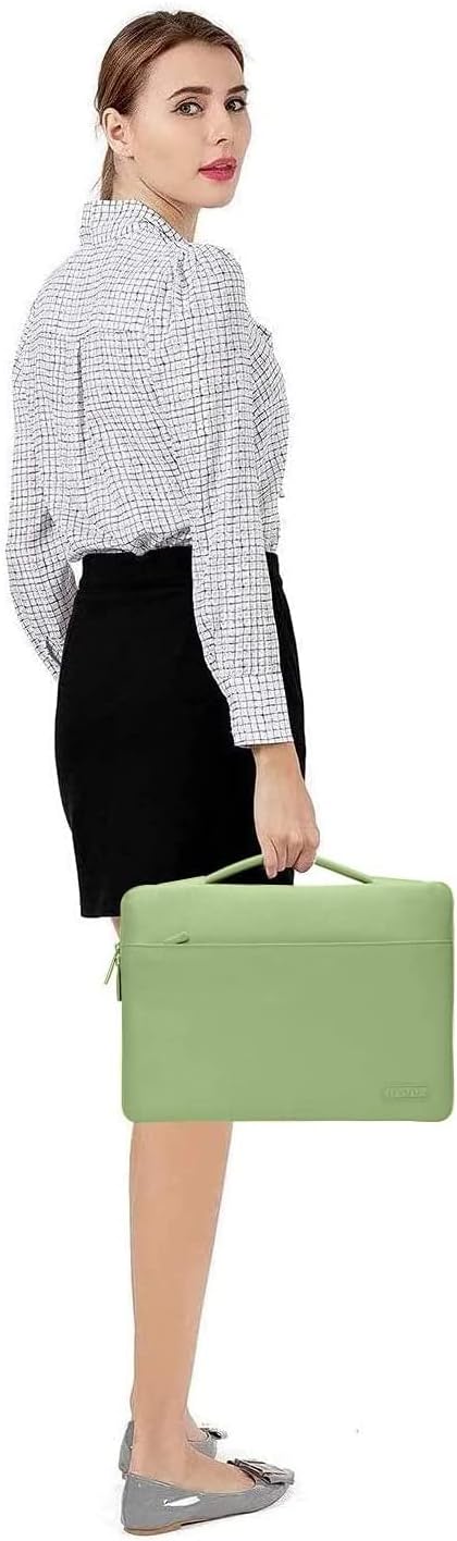 - The 360 degree protective shockproof laptop sleeve with handle carrying bag internal dimension: 13.39 x 9.25 x 0.79 inches (L x W x H); external dimension: 13.98 x 9.84 x 0.79 inches (L x W x H). The front side pocket dimension: 11.61 x 9.25 inches (L x W). Made of polyester material, protect your laptop against accidental spills. Slim and lightweight, does not bulk your device up and can easily slide into your briefcase, backpack or other bag. Ideal for business, daily and travel.